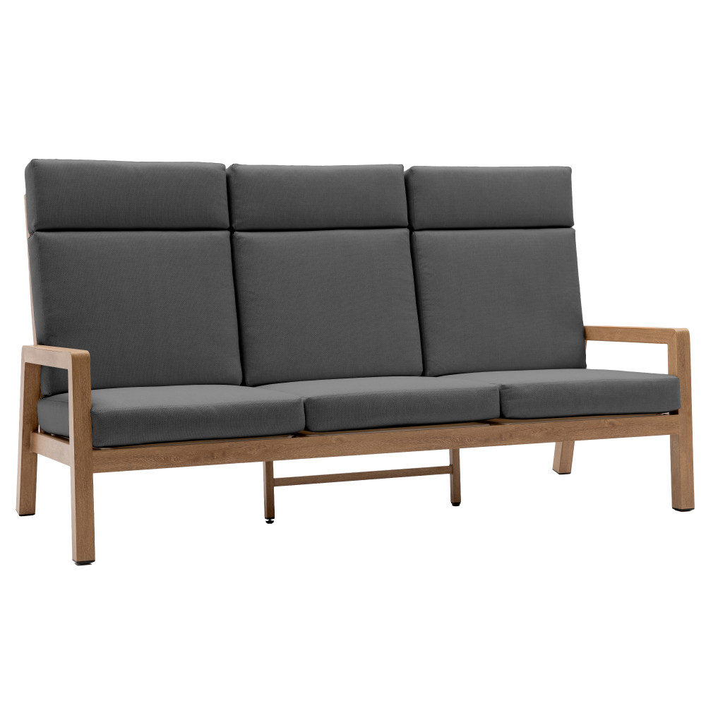 - Materiał aluminium; blat- polywood: imitacja drewna / szybkoschnące wypełnienie poduszki, tkanina: olefina