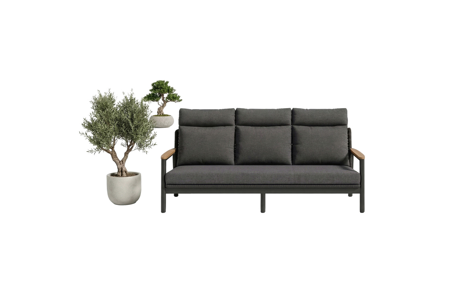Aluminiowa konstrukcja oraz 100% Olefin gwarantują długą żywotność tych mebli nawet przy intensywnym użytkowaniu na zewnątrz. Kolor podkreśla nowoczesny styl i łatwo dopasowuje się do każdego projektu przestrzeni zewnętrznej. Zestawy lounge z możliwością łączenia sof ze stołem jadalnianym sprawiają, że kolekcja ta jest niezastąpiona podczas rodzinnych obiadów, wieczornych spotkań czy przyjęć pod gołym niebem.