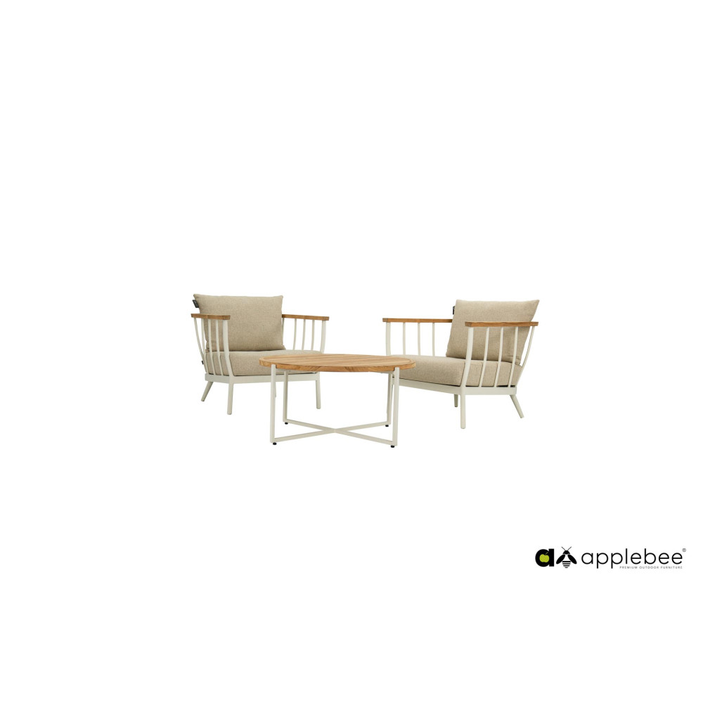 Stolik kawowy Condor od Apple Bee idealnie pasuje do nowych stylów Apple Bee, z aluminiową ramą w kolorze OYSTER (TAUPE) i blatem z drewna tekowego. Stolik kawowy Condor jest dostępny w trzech rozmiarach. Rozmiar na zdjęciu odnosi się do wersji 74 x 38 cm.