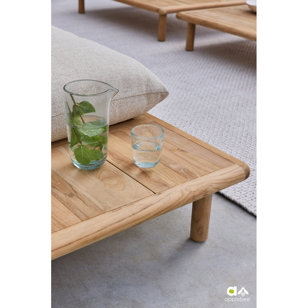 Stolik kawowy od projektanta Ralpha de Bruina wykonany jest z certyfikowanego drewna tekowego (certyfikaty FSC® i SVLK®): Każdy element mebli wykonany jest z wysokiej jakości drewna tekowego, zapewniającego wytrzymałość, odporność na wilgoć i trwałość. Drewno tekowe jest produktem naturalnym i szczególnie nadaje się do użytku na zewnątrz.
