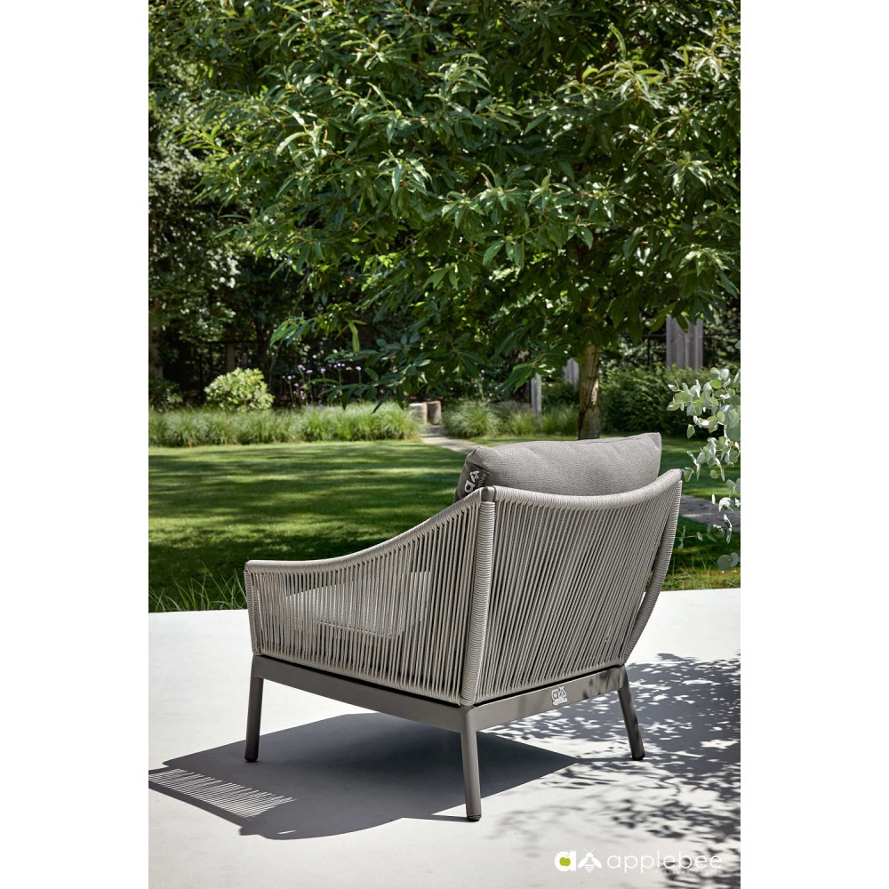 Ten stylowy zestaw wypoczynkowy to nowość w kolekcji Apple Bee na rok 2022. Obtoki Bijou Lounge wyróżnia się dwuwarstwową plecionką, przez którą można patrzeć. Liny wokół aluminiowej ramy pozostawiają otwarte rogi, odsłaniając szaro-brązowy kolor. Smukłe, zakrzywione kontury tego mebla tworzą gładki, ale elegancki wygląd. W połączeniu z harmonijną grą szaro-brązowych kolorów i plecionką, luksusowy Bijou będzie wspaniałym dodatkiem do ogrodu.