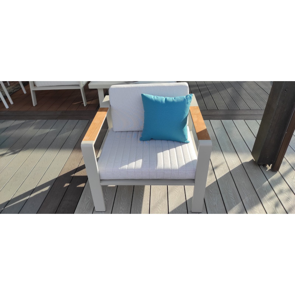- Poduszki wykonane są w 100% z olefiny, co zapewnia wysoki komfort oraz długą żywotność. Materiał jest odporny na warunki atmosferyczne i łatwy w czyszczeniu, dzięki czemu gwarantuje wygodny wypoczynek przez długi czas.