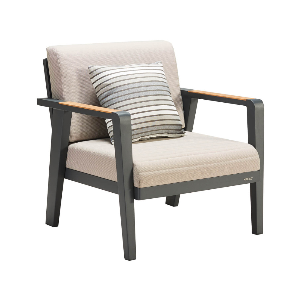 Zestaw mebli ogrodowych Higold Emoti to doskonałe połączenie wysokiej jakości i stylowego designu, zaprojektowane przez firmę Higold, aby zapewnić komfort i elegancję na świeżym powietrzu.