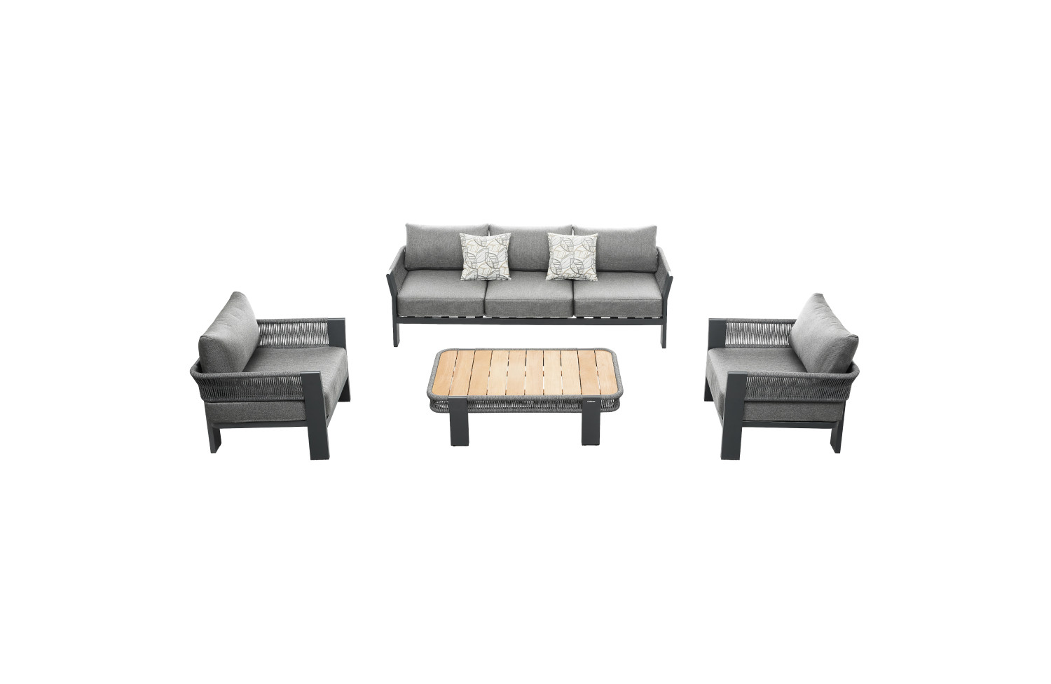 - W skład wchodzi: Sofa 3 osobowa – 1 szt. / Fotel – 2 szt. / Stolik kawowy – 1 szt.