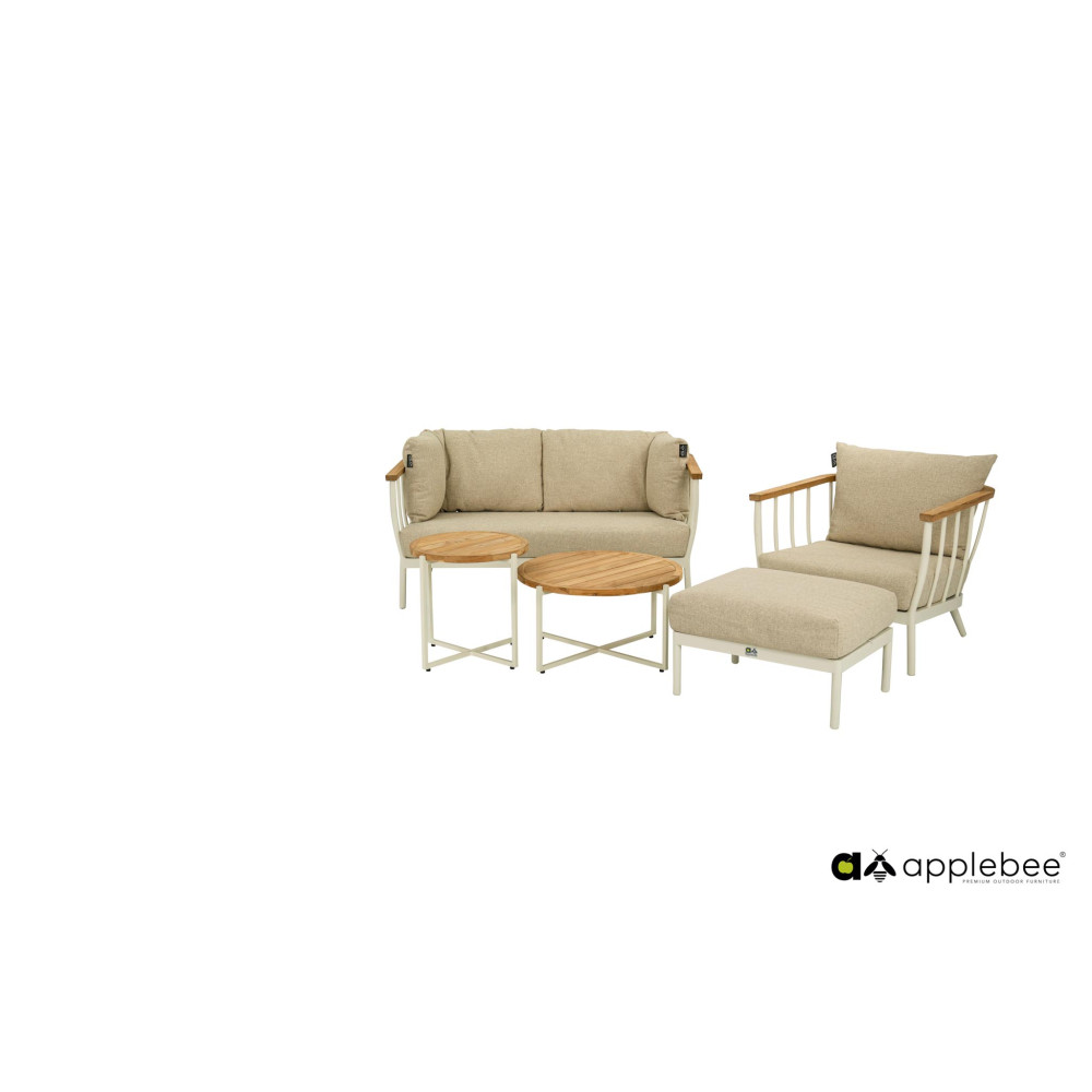 Меблі вкриті порошковим покриттям, що забезпечує набору гладкий і сучасний дизайн, а округлі форми і тепло дерева роблять набір Condor дуже сучасним і повністю відповідним сьогоднішнім трендам. Тенденція, яка продовжується, – поєднання витонченого та природного. Apple Bee вдалося добре втілити це у серії Condor.