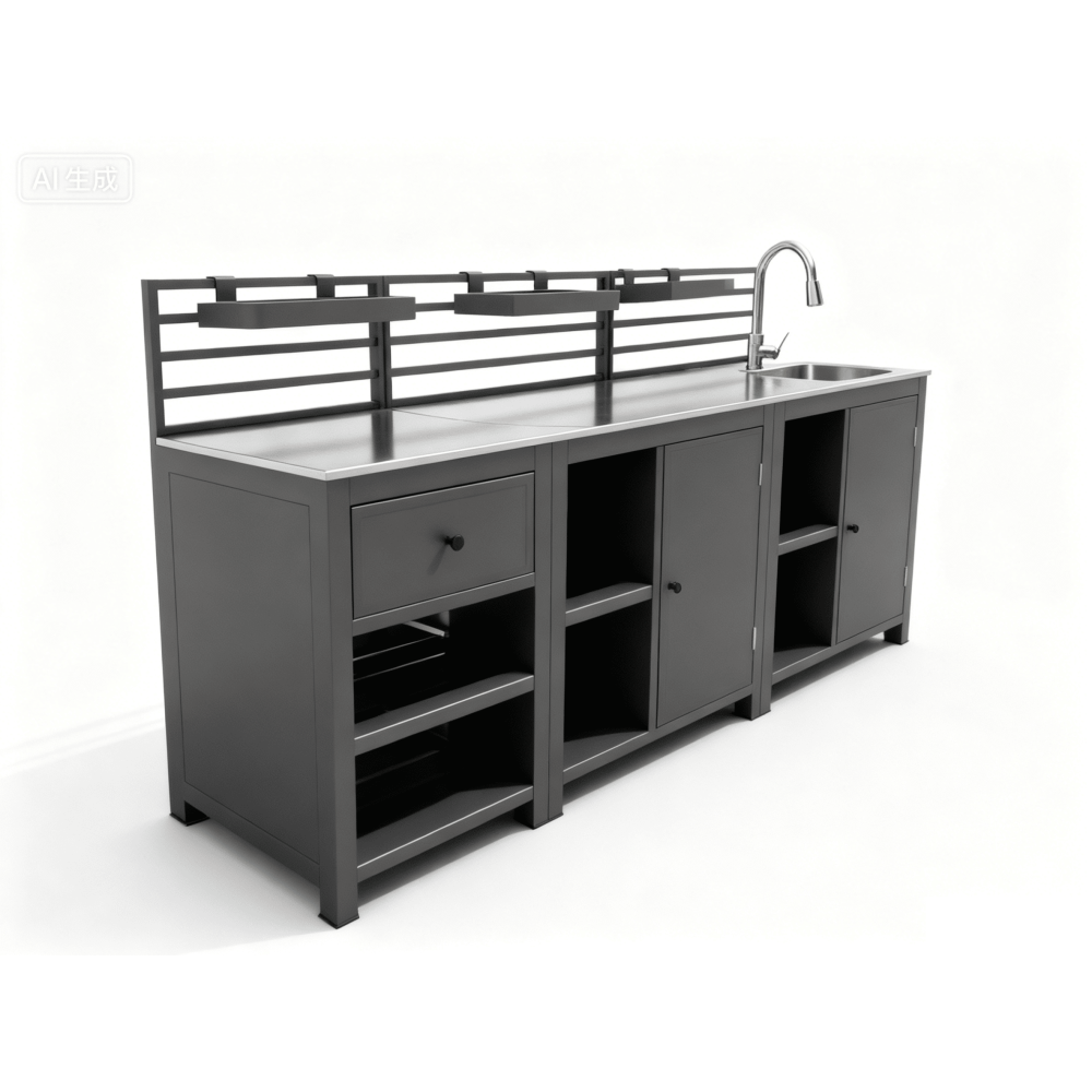 Кухня виглядає як частина інтер’єру, але повністю адаптована до зовнішніх умов експлуатації.