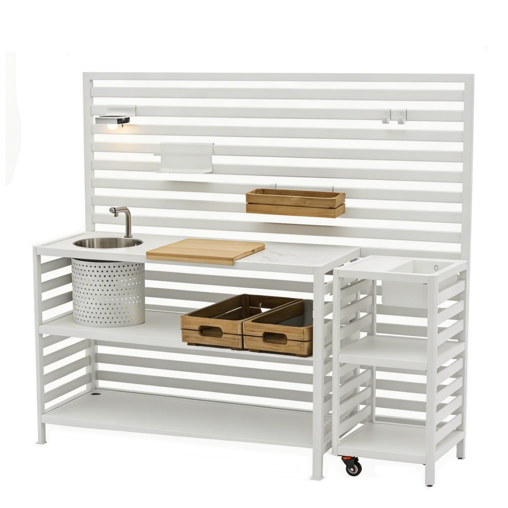 Matera Noma — це сучасна зовнішня кухня, створена для гармонійної інтеграції з простором тераси або саду. Вона поєднує преміальну естетику, функціональність та модульність, дозволяючи облаштувати повноцінну зону приготування їжі, barbecue або гриль-станцію просто неба.