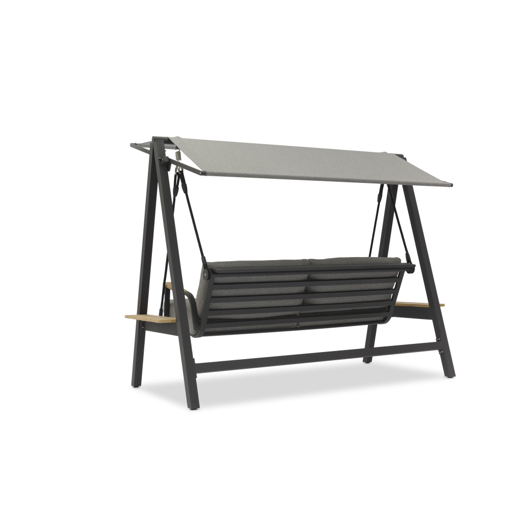 Сучасні садові гойдалки в класичному стилі, що поєднують алюміній і тикове дерево. Гойдалка LAGOM, завдяки якій ви відчуєте легкість і невагомість. Завдяки компактним розмірам вони легко розміщуються на літній терасі, можливо біля басейну або на пляжі з видом на море. Водостійка тканина, використана в цій колекції, не створює труднощів у догляді. Особливу увагу слід звернути на подушку, оскільки вона є ключовим елементом комфорту.
