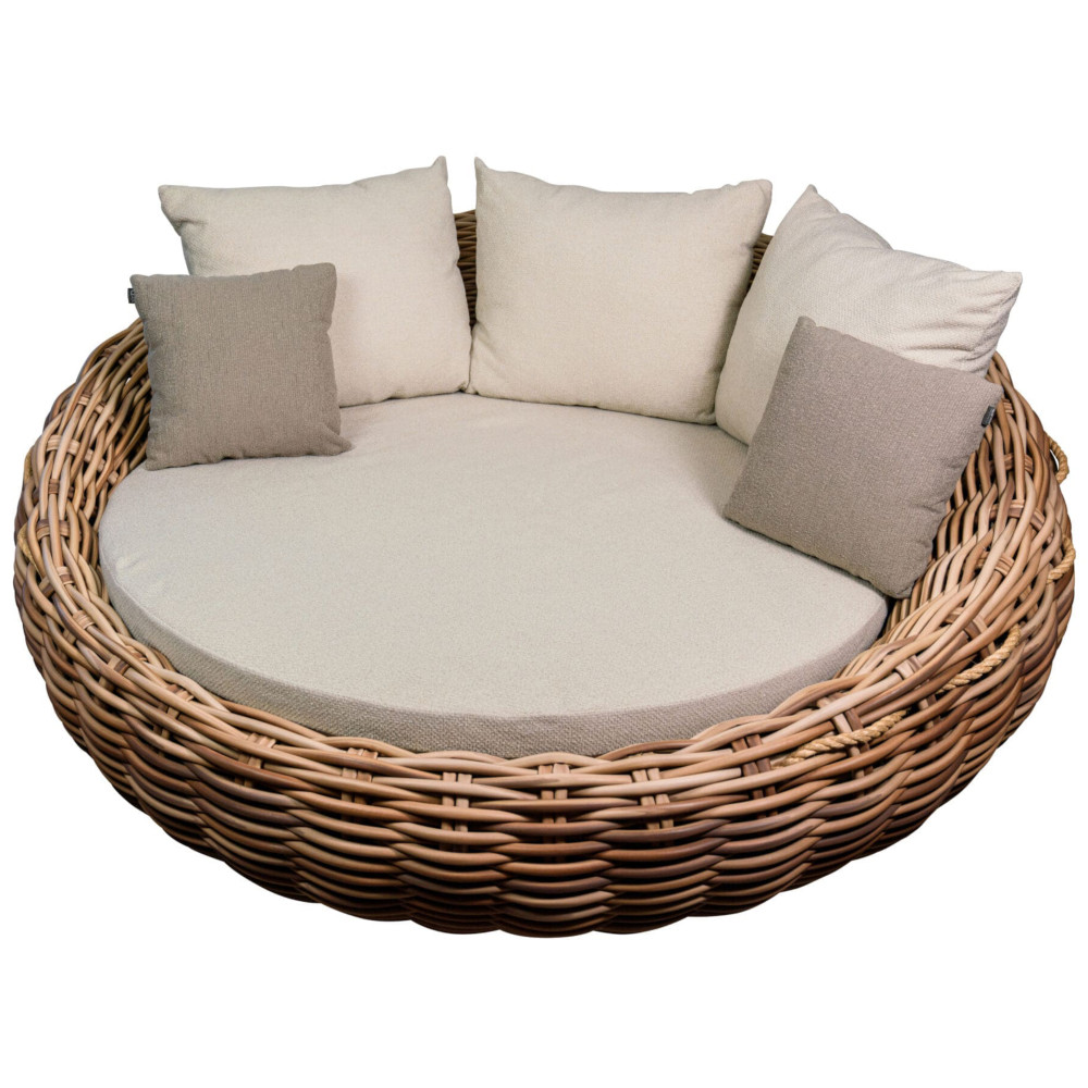 Повернення після довгої відсутності! Не дивно, що Cocoon був повторно включений до колекції Apple Bee, цього разу у дуже сучасному вигляді. Красиві бежеві подушки для відпочинку з технологією Bee Wett® з товстою тканою ниткою Biculair® товщиною до 20 мм. Ваше власне безпечне місце у саду або на терасі.