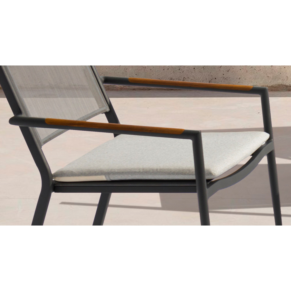 Текстилен — синтетична тканина, завдяки сучасним технологіям, поєднала в собі водостійкість, стійкість до пилу і бруду, а також повну екологічність. Ця тканина є одним з кращих матеріалів для виробництва садового меблі, оскільки вона не боїться сонячних променів, стійка до зовнішніх впливів і може перебувати на літніх майданчиках цілий рік.