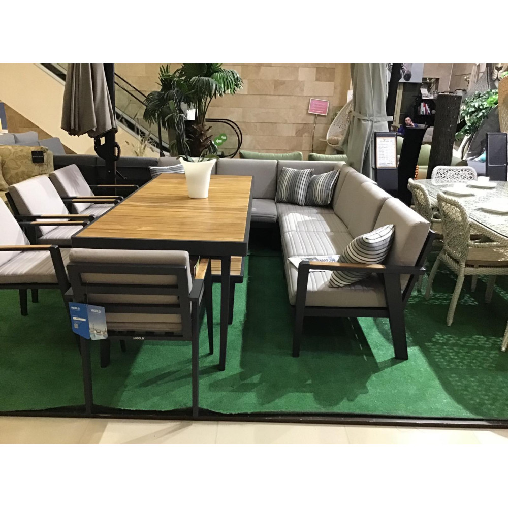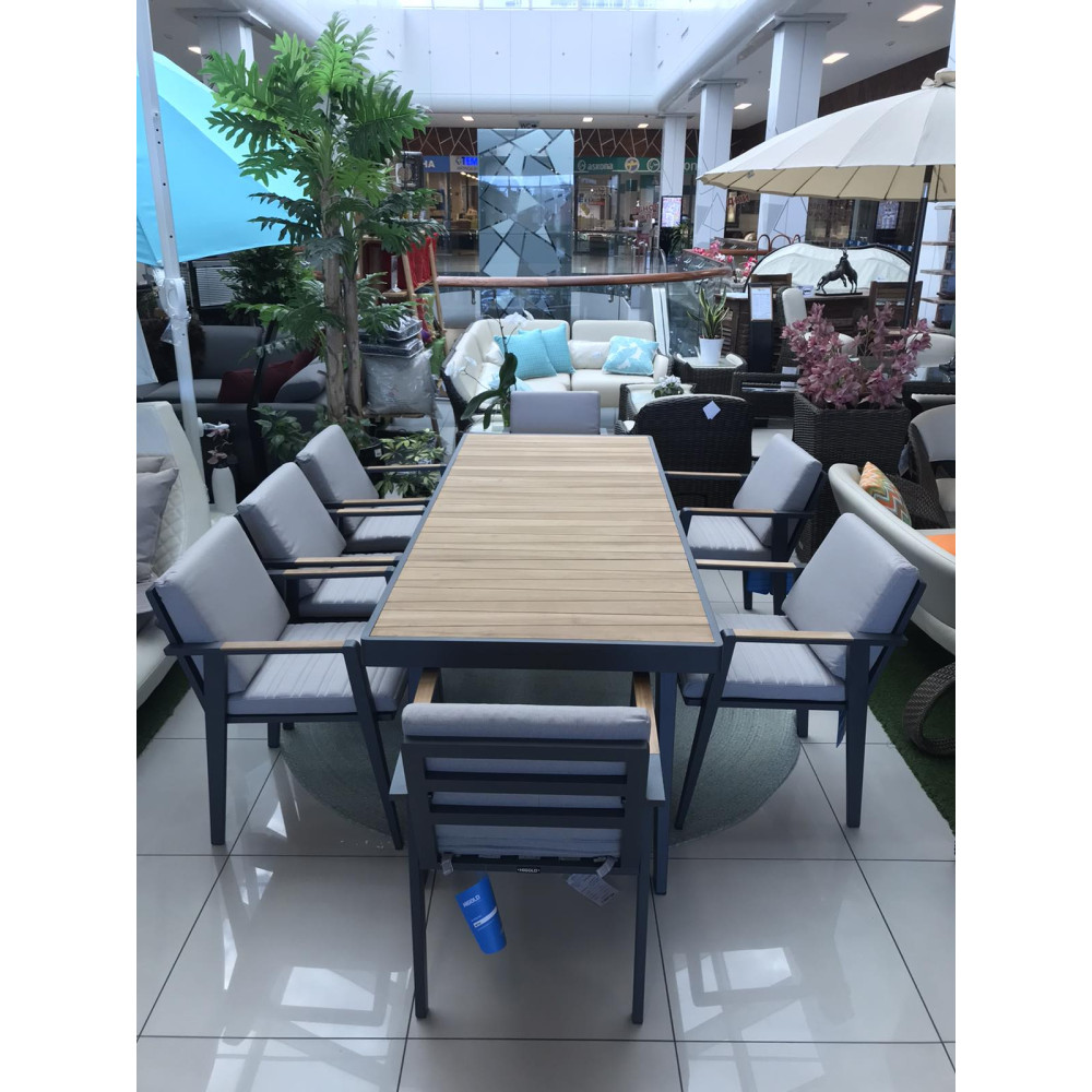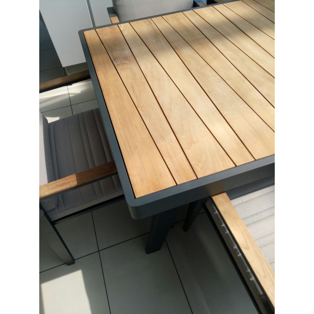 Комплект Emoti є однією з їх чудових пропозицій, яка поєднує алюмінієвий каркас для легкості та міцності, тикове дерево для природного зваблення та стійкості до погодних умов, а також подушки з поліестеру для комфортного відпочинку.Дизайн комплекту Emoti від Higold відображає Він має вишукані лінії, привабливі матеріали та зручність, створюючи привабливу атмосферу для відпочинку та релаксації на свіжому повітрі.