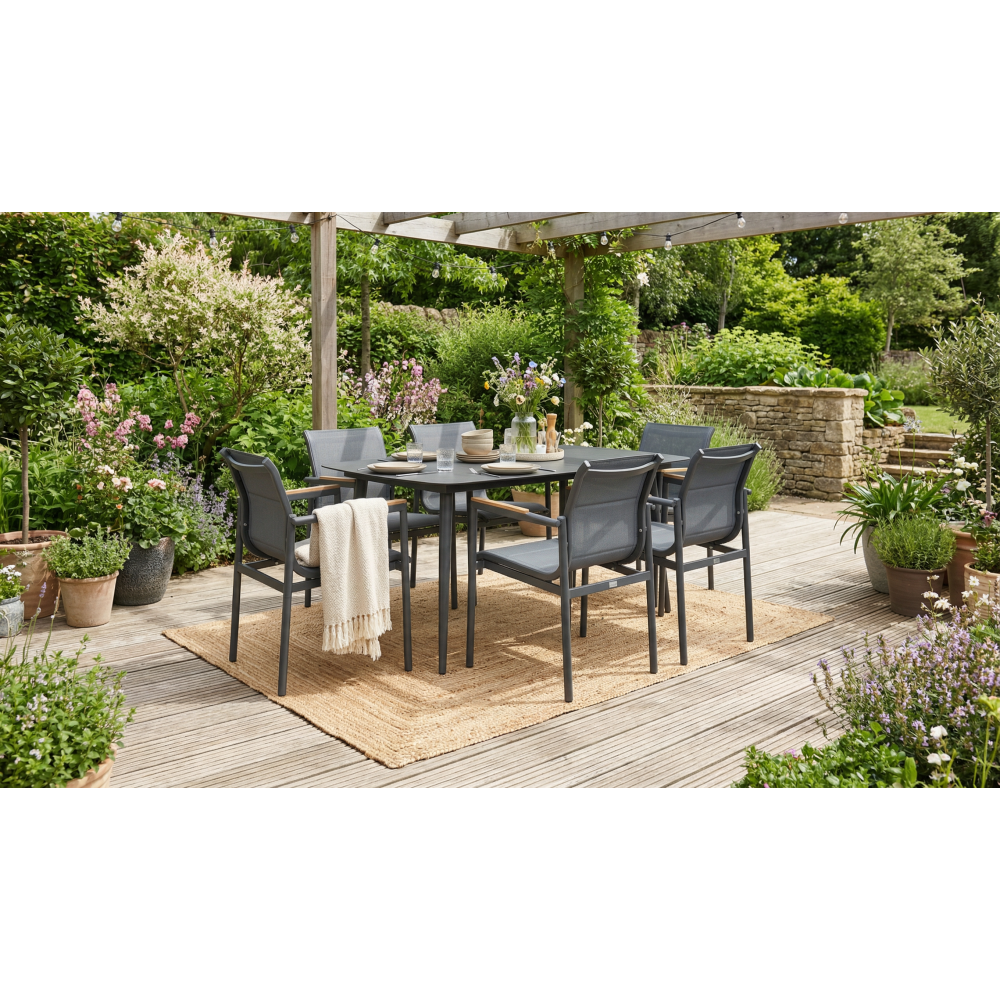 Темно-сірий колір надає меблям сучасного та універсального вигляду, що дозволяє легко поєднувати їх з різними стилями інтер’єру, тераси або саду.