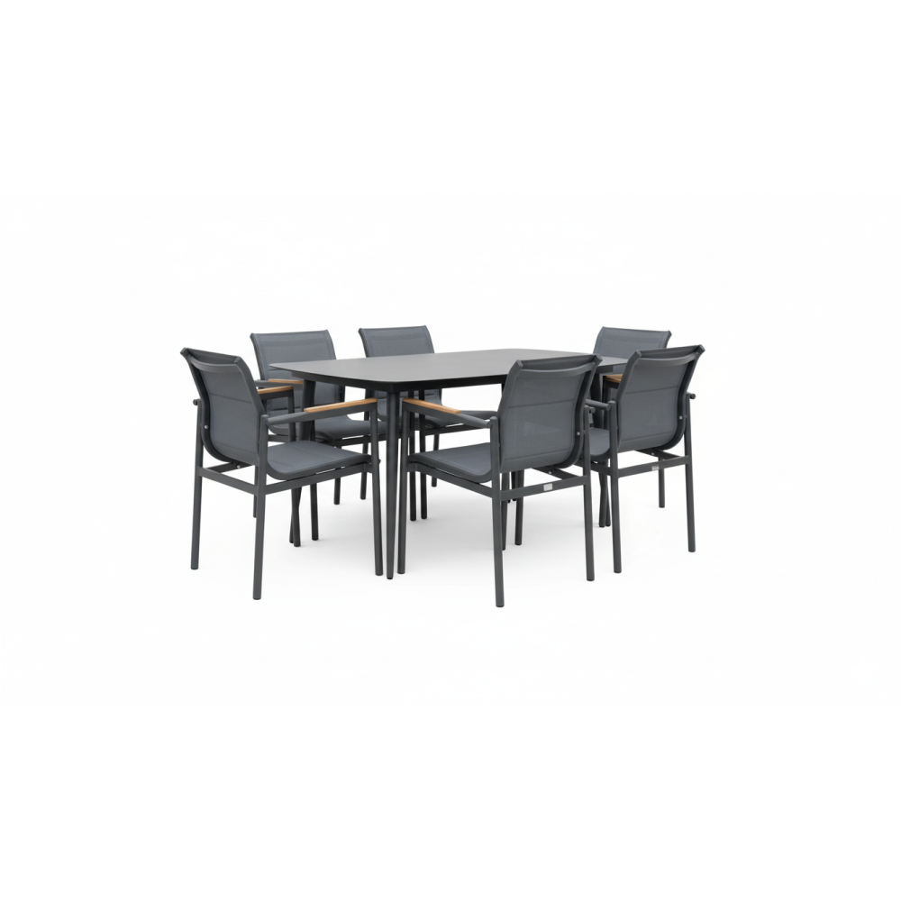 Матеріали колекції відповідають найвищим стандартам якості. Каркас виготовлений з алюмінію, а подушки та м’які елементи — зі 100% тканини олефін, що забезпечує міцність, стійкість до зношування та довговічність меблів.