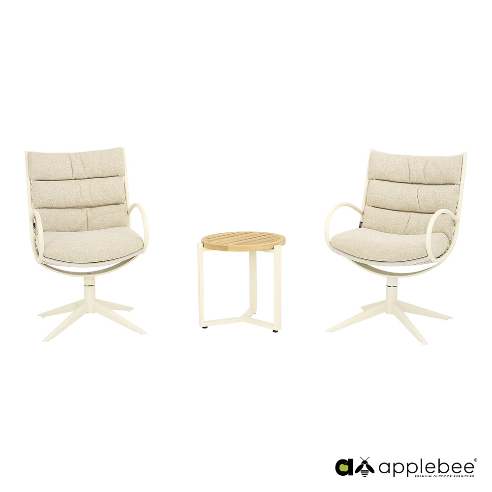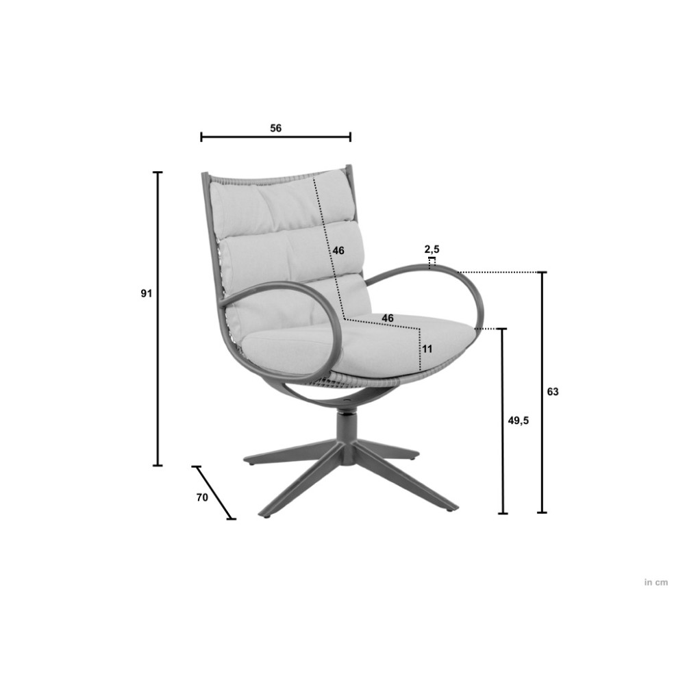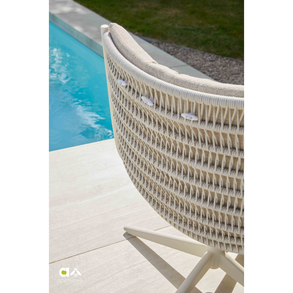 CAMP BAY lounge-dining chair оснащений поворотною основою, що дозволяє легко сідати та вставати, не пересуваючи стілець. Конструкція виготовлена з високоякісного металу та доповнена витонченим відкритим плетінням Biculair®, яке надає виробу легкого та повітряного вигляду.