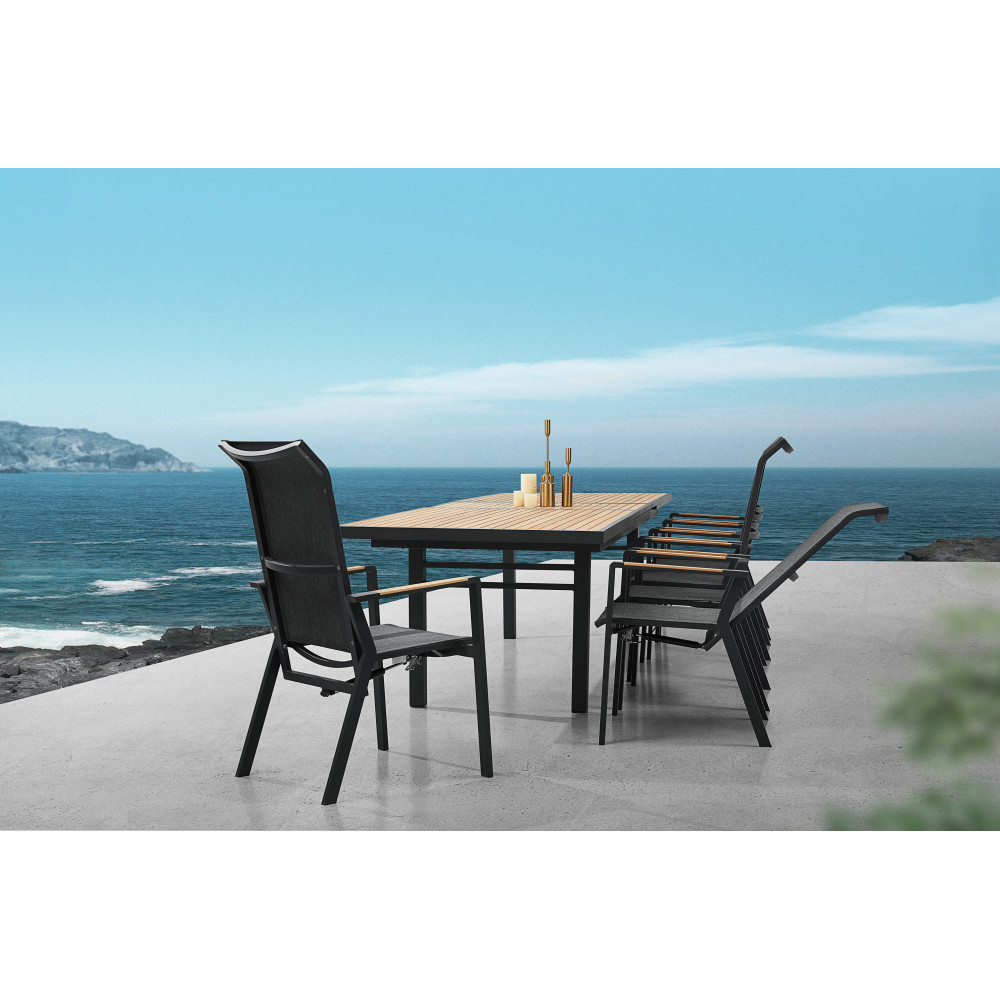 - Сертифікований тик, використаний у цій колекції, гарантує надійність, міцність і природну привабливість меблів. Він володіє властивостями, які роблять його ідеальним матеріалом для зовнішніх умов.