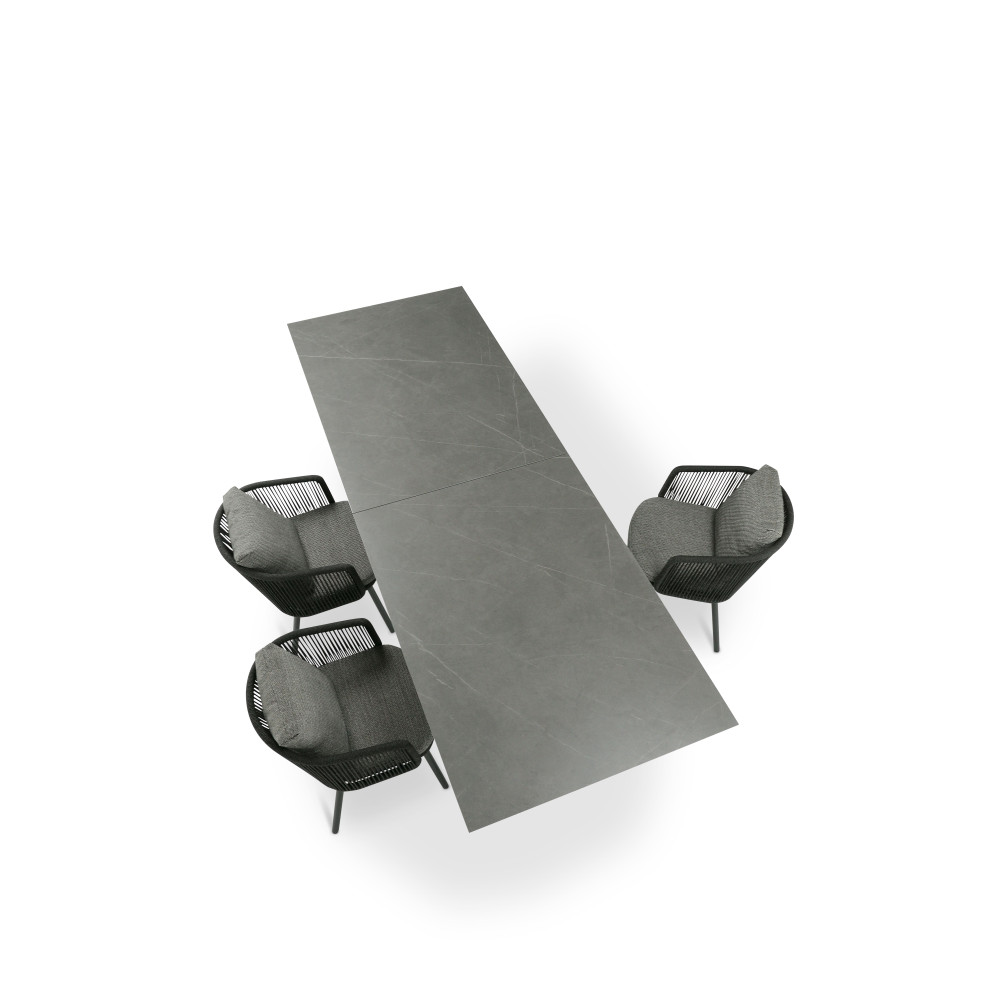 Перше враження, яке справляє колекція меблів, — це чиста елегантність. Завдяки компактним розмірам і повітряній конструкції її легко адаптувати до різних типів простору. Колекція включає широкий вибір меблів для сидіння та обіду, що дозволяє створити власний стильний простір як у приміщенні, так і на відкритому повітрі. Обідній стіл відповідає найвищим стандартам якості та екологічності. Вишуканий дизайн і використання лише сучасних матеріалів і технологій виводять ці меблі на рівень провідних світових виробників. Колекція містить легкі та візуально повітряні елементи, а обідній стіл додає їй елегантності. У поєднанні з обідніми стільцями створюється вишуканий та гармонійний вигляд. Стіл стійкий до погодних умов і ідеально підходить для обідів на свіжому повітрі протягом усього року.