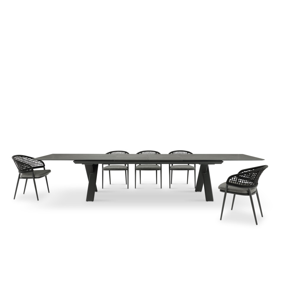 Перше враження, яке справляє колекція меблів, — це чиста елегантність. Завдяки компактним розмірам і повітряній конструкції її легко адаптувати до різних типів простору. Колекція включає широкий вибір меблів для сидіння та обіду, що дозволяє створити власний стильний простір як у приміщенні, так і на відкритому повітрі. Обідній стіл відповідає найвищим стандартам якості та екологічності. Вишуканий дизайн і використання лише сучасних матеріалів і технологій виводять ці меблі на рівень провідних світових виробників. Колекція містить легкі та візуально повітряні елементи, а обідній стіл додає їй елегантності. У поєднанні з обідніми стільцями створюється вишуканий та гармонійний вигляд. Стіл стійкий до погодних умов і ідеально підходить для обідів на свіжому повітрі протягом усього року.