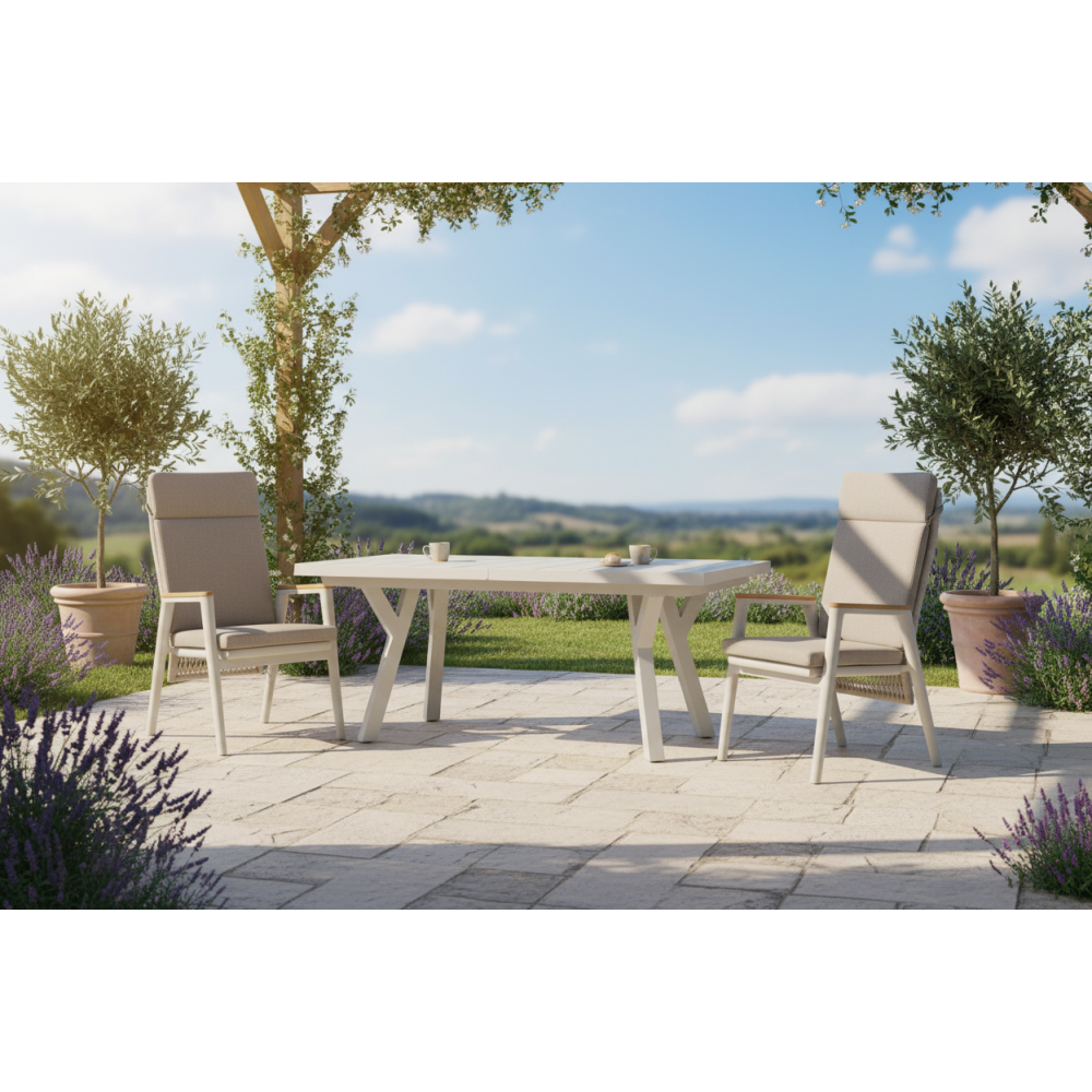 Обідній стіл SKANDI — це стильне та практичне рішення для тих, хто цінує довговічність, естетику та комфорт. Його сучасний вигляд і зручна функціональність ідеально доповнять інтер’єр або терасу.