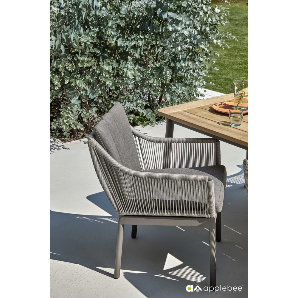 Елегантний обідній стіл Apple Bee Bijou, виконаний з алюмінієвої рами та теплої за кольором та текстурою стільниці. Стіл ідеально підходить до стільців із серії Bijou. Колекція вуличної меблі Apple Bee Bijou — це вишукане поєднання стилю та функціональності, створене для надання комфорту та естетики на відкритому повітрі.