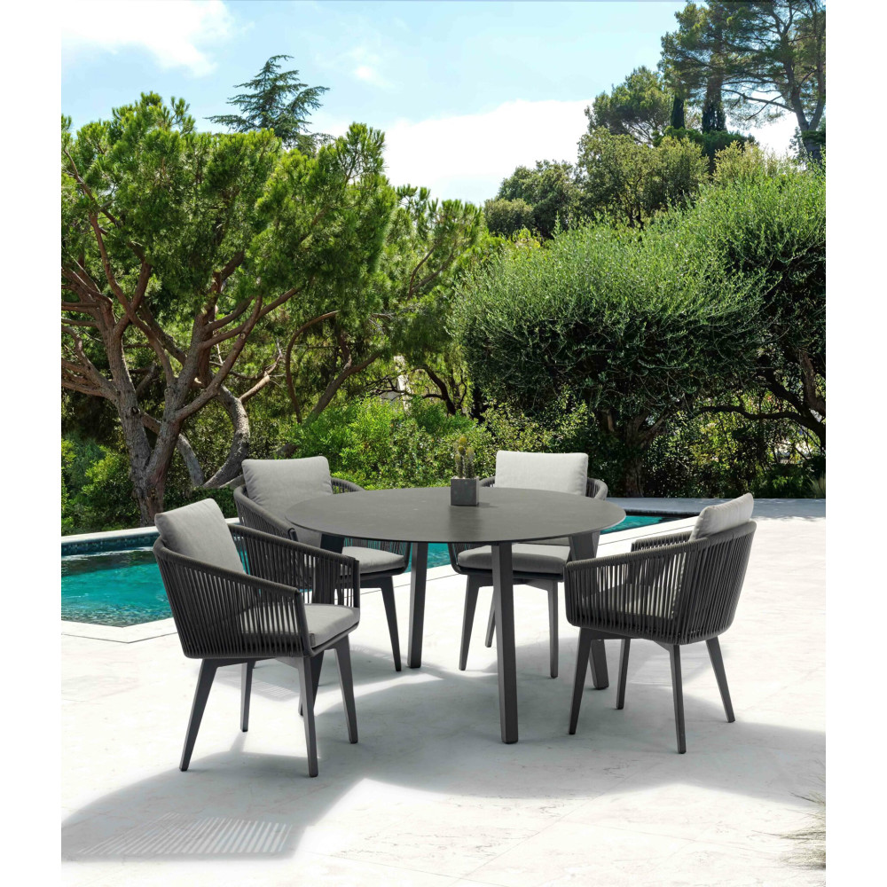 Цей обідній стіл - чудове рішення для невеликої родини. Поєднайте стіл з обідніми стільцями тієї ж серії, і ви отримаєте стильну терасу. Дивіться також барний стіл серії Diva та інші розміри обіднього столу. Стільниця виготовлена із загартованого скла з керамічним покриттям та легко чиститься. Легка та міцна алюмінієва рама дозволяє легко чистити стіл та переміщати його у потрібне місце. Каркас пофарбований якісною та довговічною порошковою фарбою.