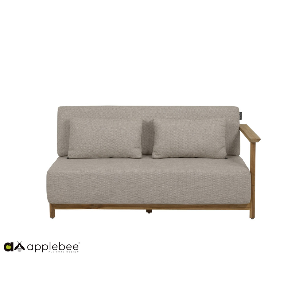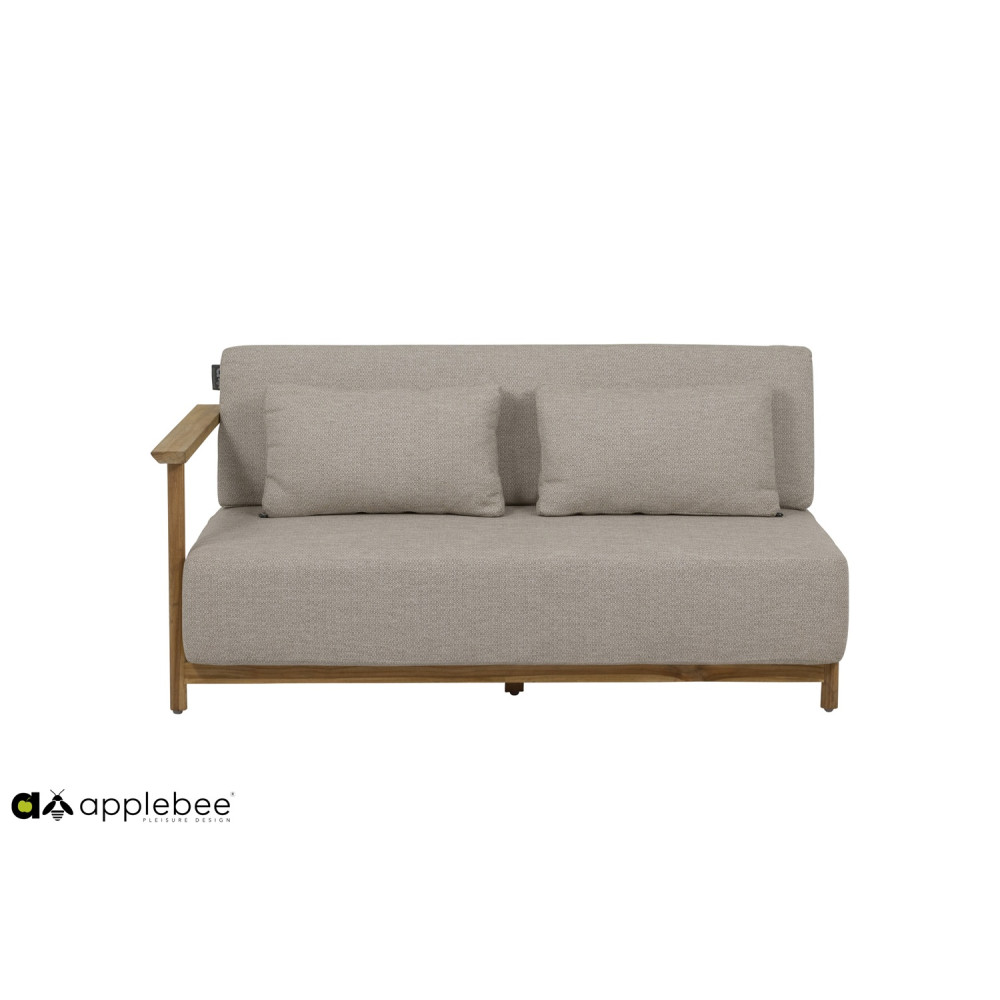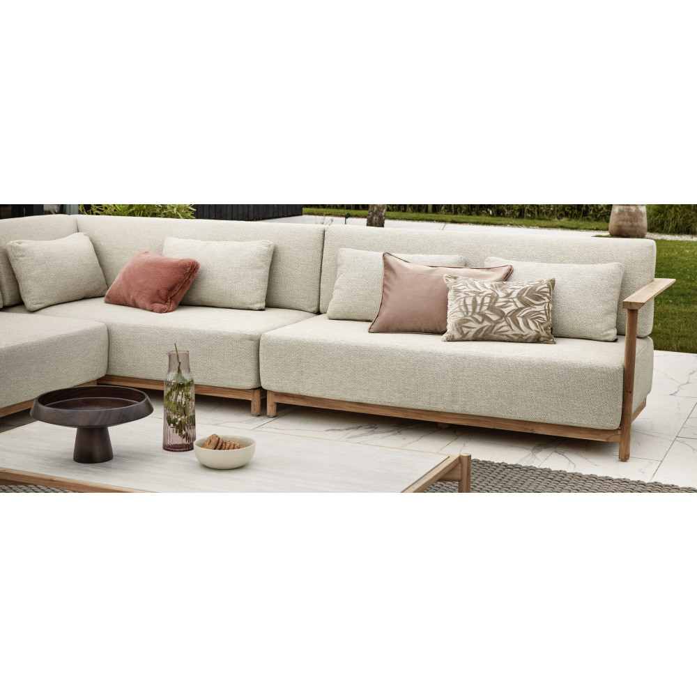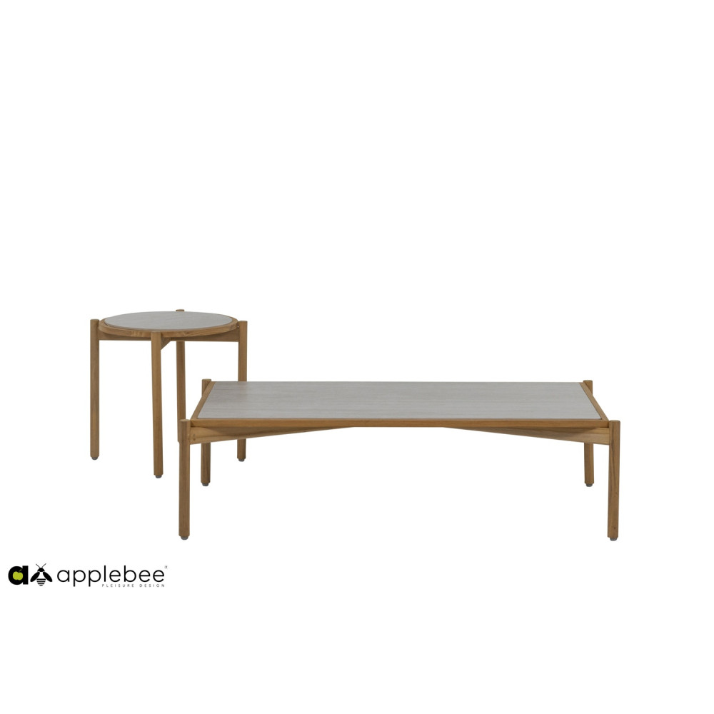 Є два різних столи, що поєднуються, прямокутний журнальний столик і круглий бічний столик. Обидва мають однаково красиву раму з тикового дерева та мають керамічну стільницю з травертиновим мотивом кремового кольору. Це ідеально поєднується з рештою колірної палітри. Зробіть один довгий диван з двох диванів або створіть простору кутову конструкцію з 3 або навіть 4 диванів. Хочете додати окреме крісло для відпочинку? Вибір за вами… Кого ви запросите на наступну вечірку в саду?