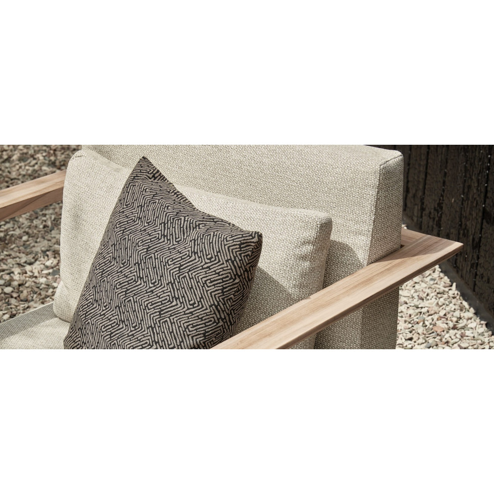 Наскільки розкішними ви хочете мати подушки у своєму наборі для відпочинку? У St. Lucia Teak Lounge є подушки для сидінь товщиною не менше 25 см, звичайно, якості Apple Bee Bee Wett. Хоча ви цього не очікували, ці подушки також сохнуть значно швидше, ніж подушки зі стандартною піною. Завдяки надзвичайно товстим подушкам St. Lucia одразу набуває дуже розкішного вигляду, але залишається сучасним завдяки своїй витонченій формі та міцності. Звичайно, це частково завдяки каркасу з високоякісного тика СВЛК натурального кольору. Круглі ніжки плавно продовжують спинку виробу, сідаючи в таке крісло або диван, ви відчуваєте повний комфорт. Сент-Люсія міцна та вишукана у всіх правильних пропорціях!