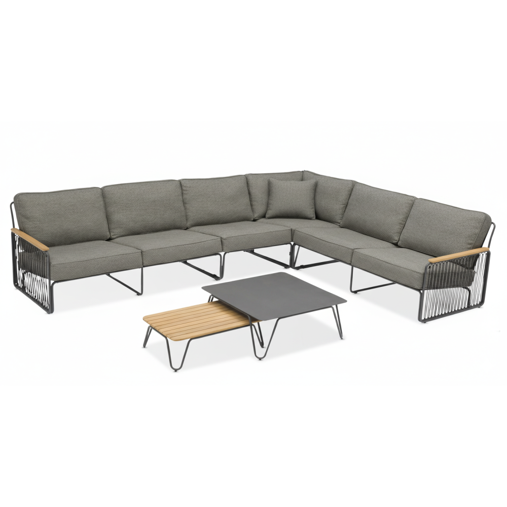 Деталі: Підлокітники з натурального тикового дерева додають елегантності й затишку, підкреслюючи природний стиль колекції.