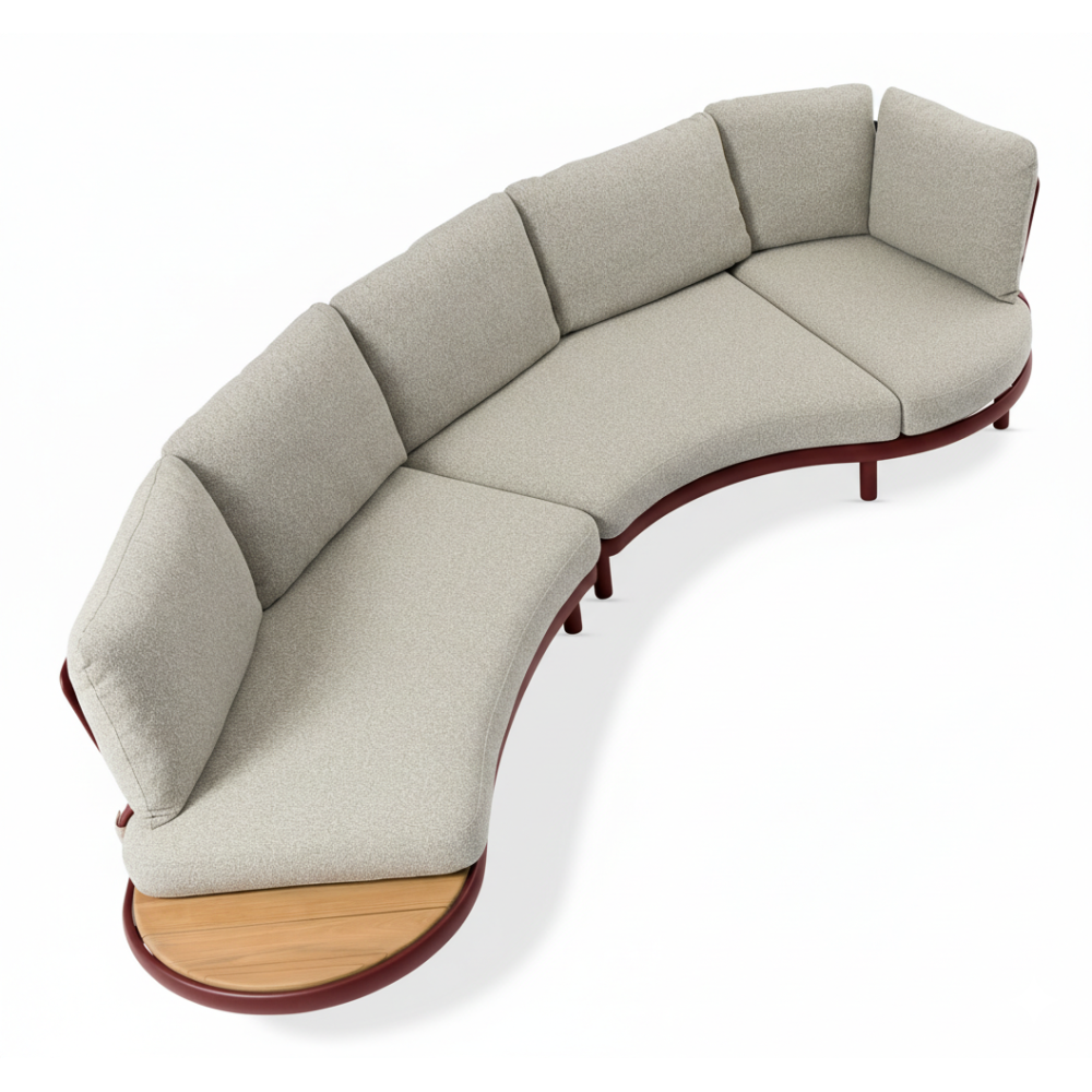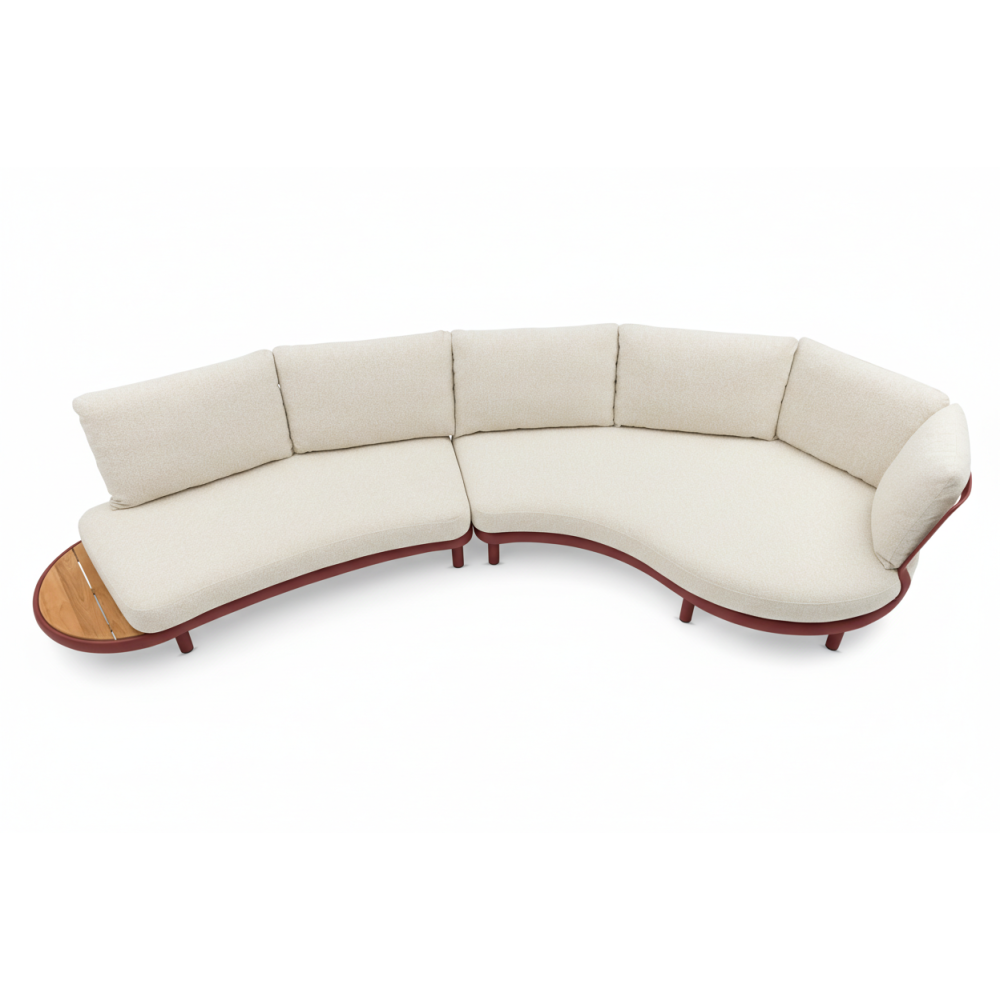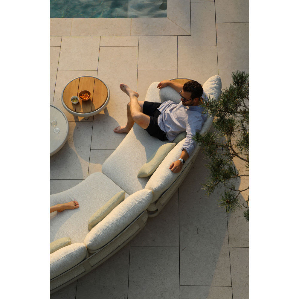 Компанія LAGOM створила щось особливе, абсолютно нове, образ вигнутий дивана LAGOM CLOUD надихає. Дивана LAGOM CLOUD з подушками, з кутов столом — унікальний усім своїм дизайнерським рішенням, своїми матеріалами найвищого класу і є функціональним доповненням вашого саду. LAGOM CLOUD є модульним комплектом і його можна укомплектувати на свій смак. Функціональний не тільки модульний диван, а й журнальний столик не поступається своєю універсальністю. Столик із стільницею з легкого бетону посередині укомплектований двома знімними тиковими підносами з боків. Дуже зручно для подачі їжі та напоїв!