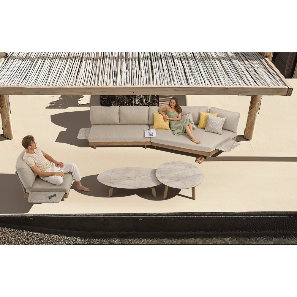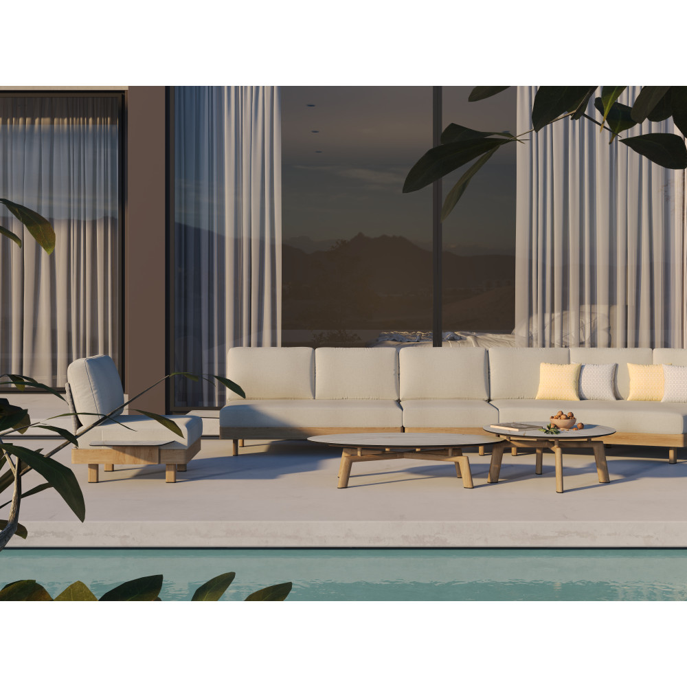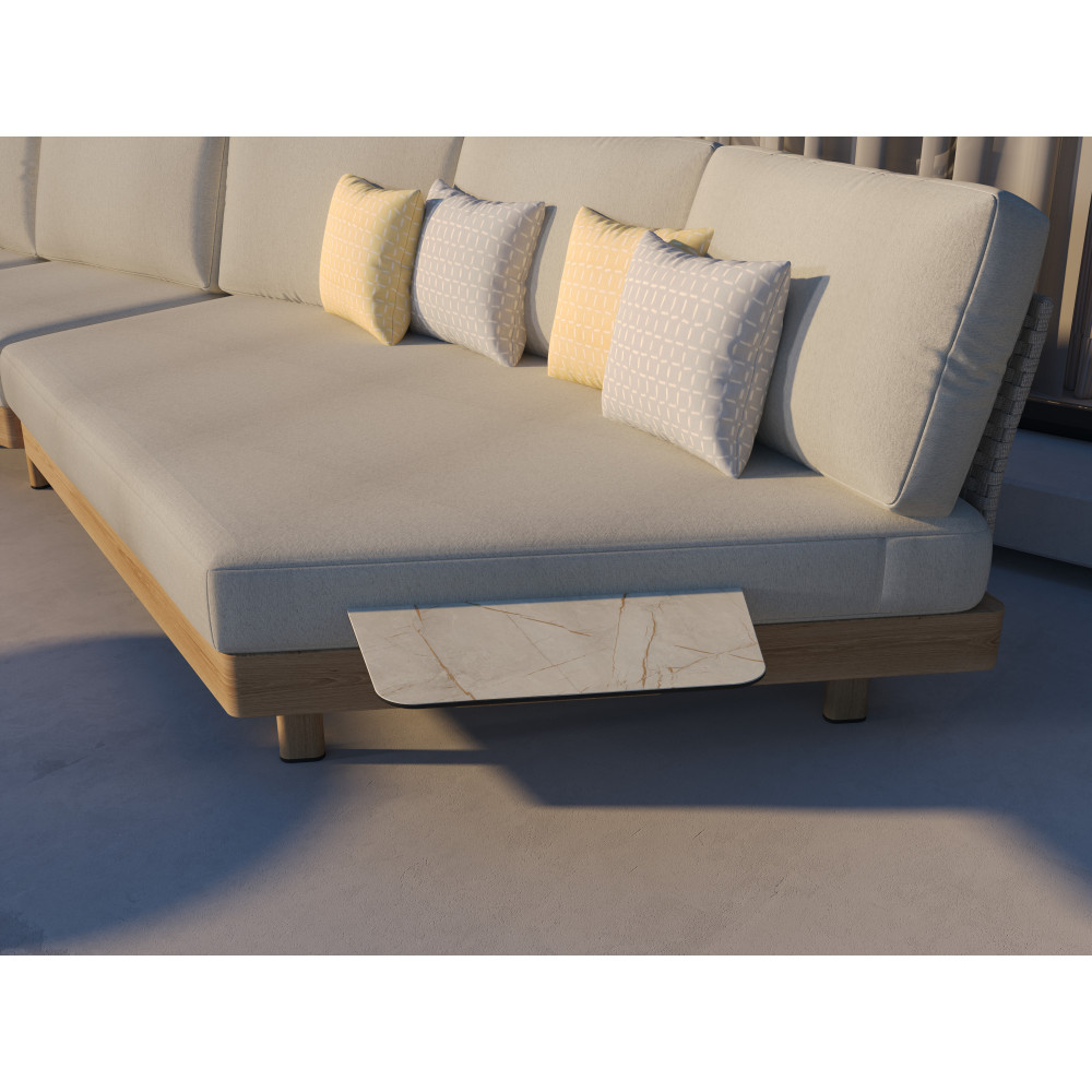 - Оббивка з акрилових тканин COUTUREtex — водовідштовхувальна, стійка до вологи й ультрафіолету, легко очищується та зберігає насиченість кольору.