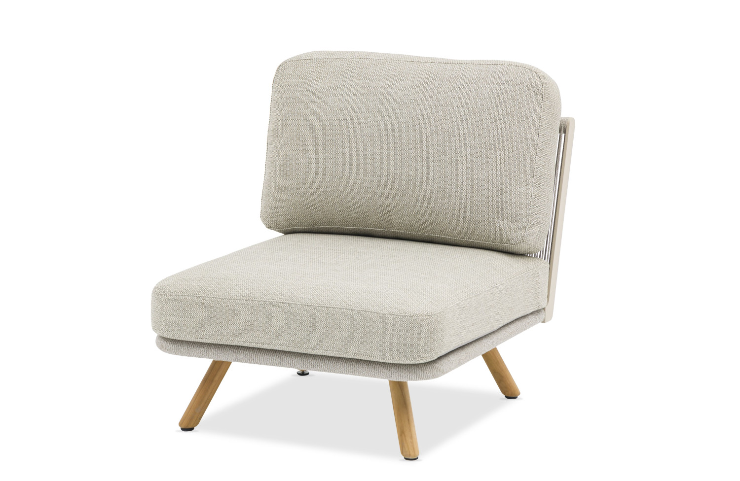Тканина SUNPROOF, використовувана для оббивки меблів, також є важливою складовою цього комплекту. Ця тканина відома своєю високою стійкістю до ультрафіолетового випромінювання та вологи, що робить її ідеальним варіантом для зовнішніх умов. Така стійкість забезпечує тривалу збереженість кольору та вигляду тканини навіть під впливом сонячних променів та опадів.