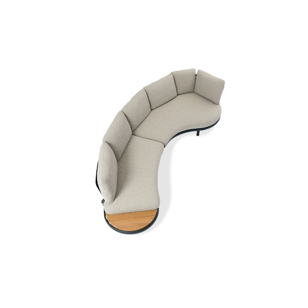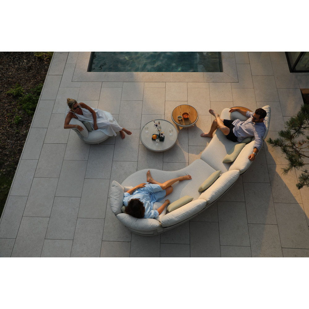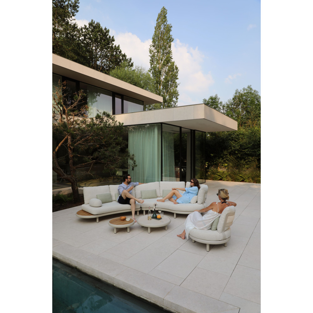 Компанія LAGOM створила щось особливе, абсолютно нове, образ вигнутий дивана LAGOM CLOUD надихає. Дивана LAGOM CLOUD з подушками, з кутов столом — унікальний усім своїм дизайнерським рішенням, своїми матеріалами найвищого класу і є функціональним доповненням вашого саду. LAGOM CLOUD є модульним комплектом і його можна укомплектувати на свій смак. Функціональний не тільки модульний диван, а й журнальний столик не поступається своєю універсальністю. Столик із стільницею з легкого бетону посередині укомплектований двома знімними тиковими підносами з боків. Дуже зручно для подачі їжі та напоїв!
