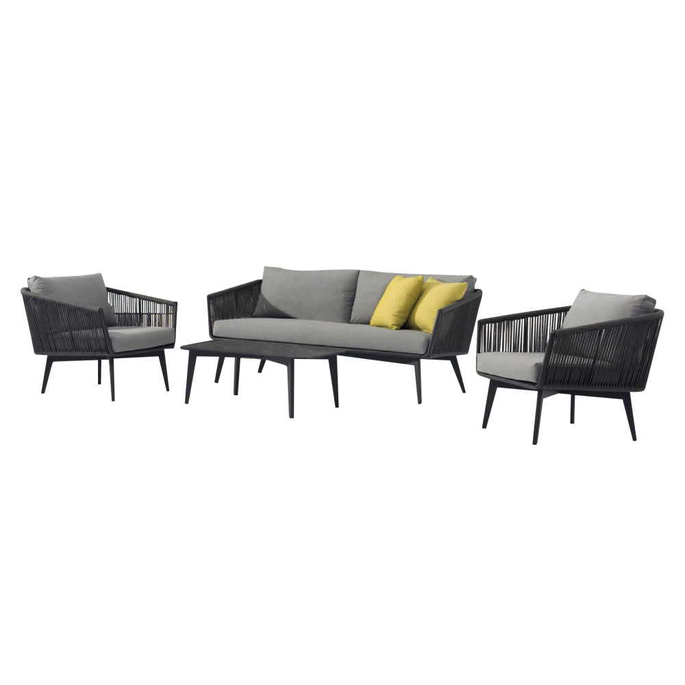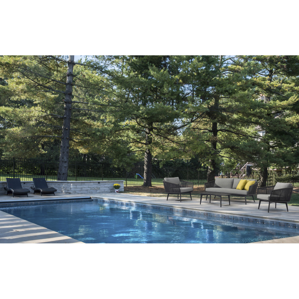 - Матеріал алюм; плетіння: олефіновий канат 5 мм / швидко-висихаючий наповнювач подушок, тканина: олефін