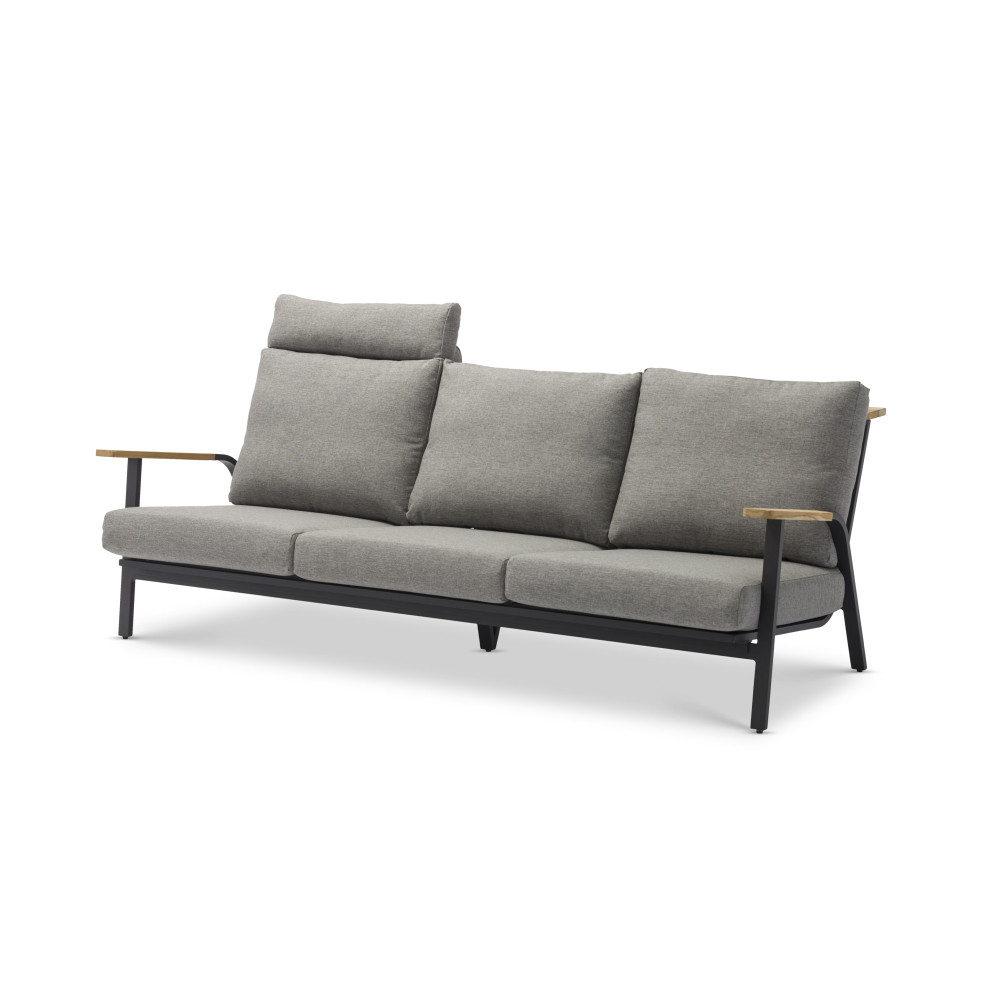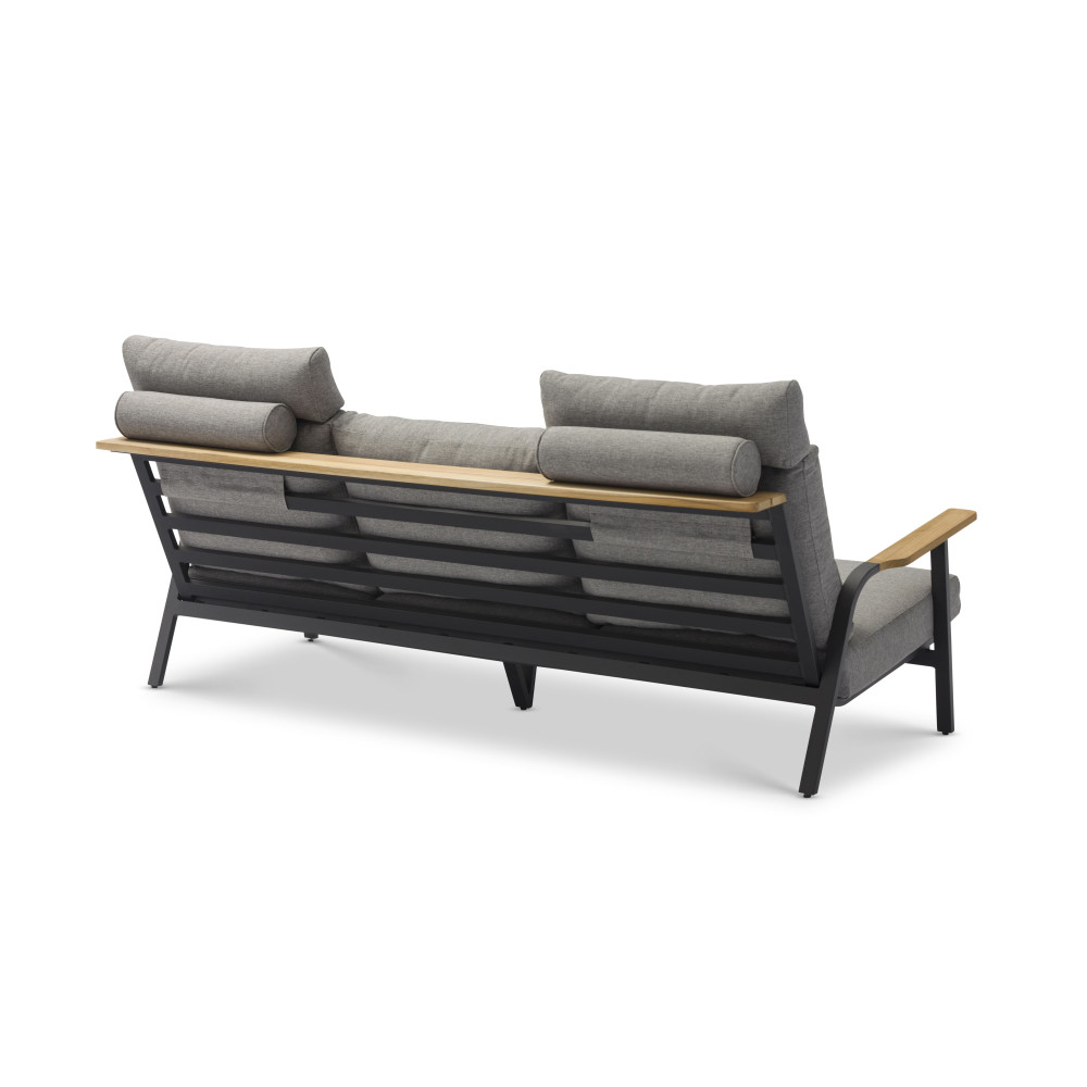 Це сучасна та дуже стримана лаунж-група з ідеальним поєднанням матеріалів. Група є надзвичайно зручною завдяки товстим подушкам з піни високої щільності. Чохли для подушок виготовлені з олефінової тканини з водонепроникним внутрішнім покриттям. Каркас з нержавіючої сталі з порошковим покриттям антрацитового кольору з красивими деталями з натурального дерева на підлокітниках. Усе це створено для того, щоб витримувати різні погодні умови.