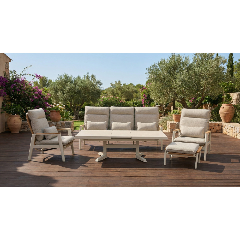 Це сучасний мінімалістичний комплект для відпочинку з ідеальним поєднанням матеріалів. Його головна перевага — максимальний комфорт.