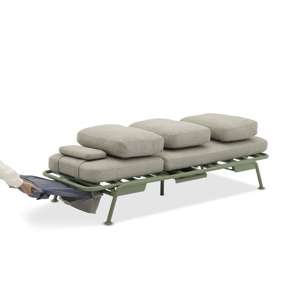 Модель можна використовувати як 3-х місний диван, як шезлонг з узголів'ям, що піднімається, причому бік підйому можна вибрати відповідно до вашої зручності.