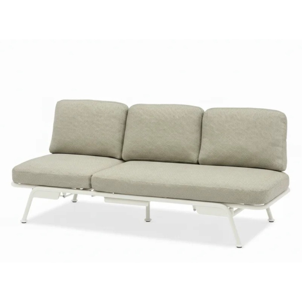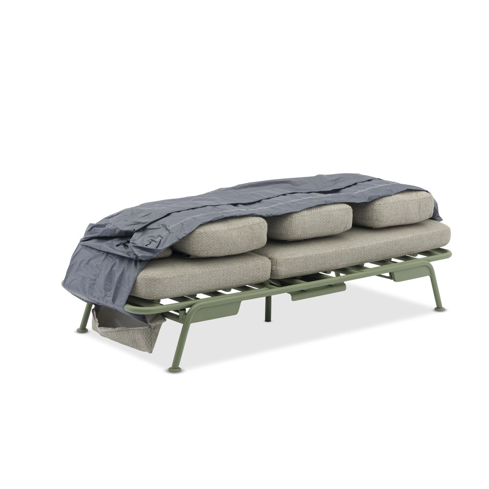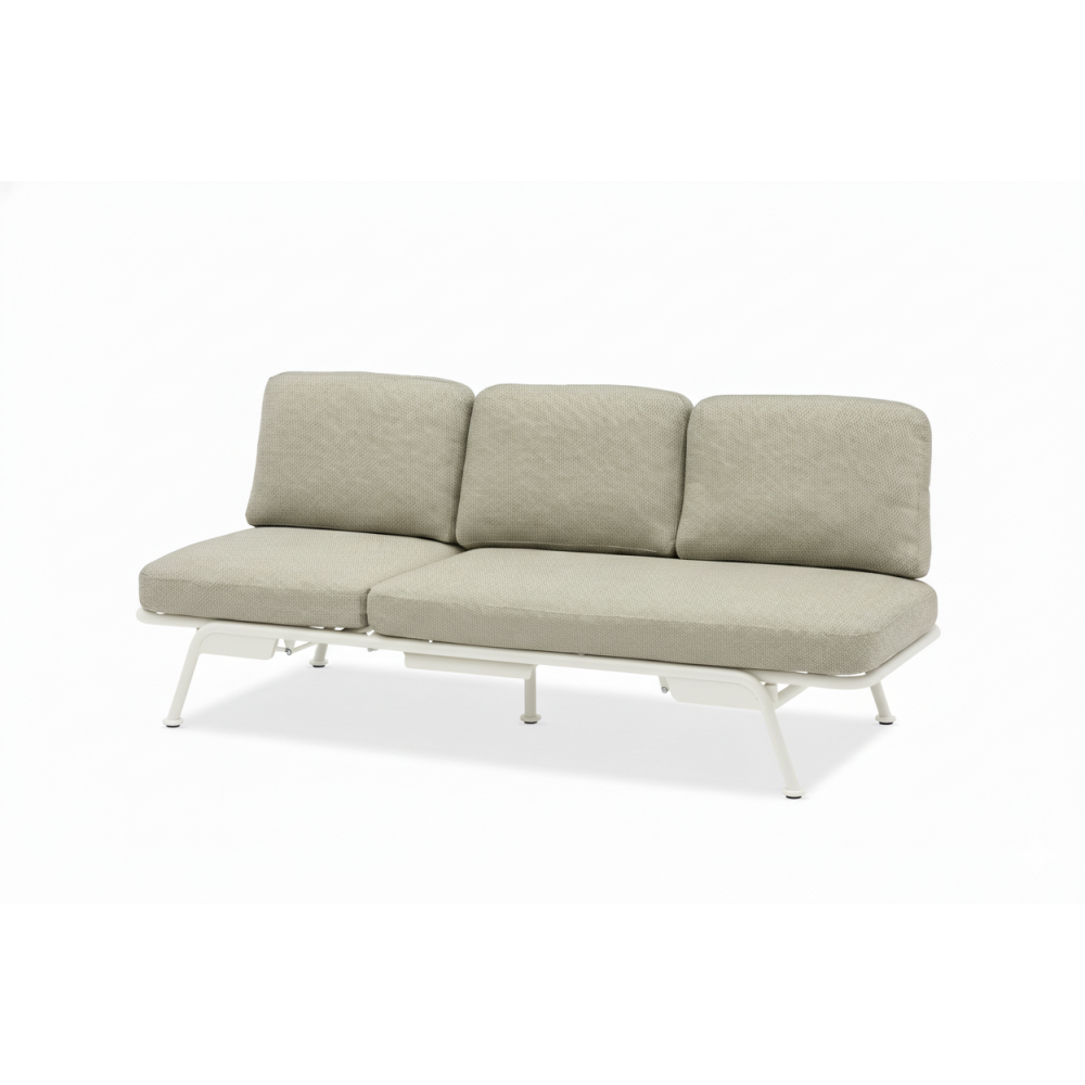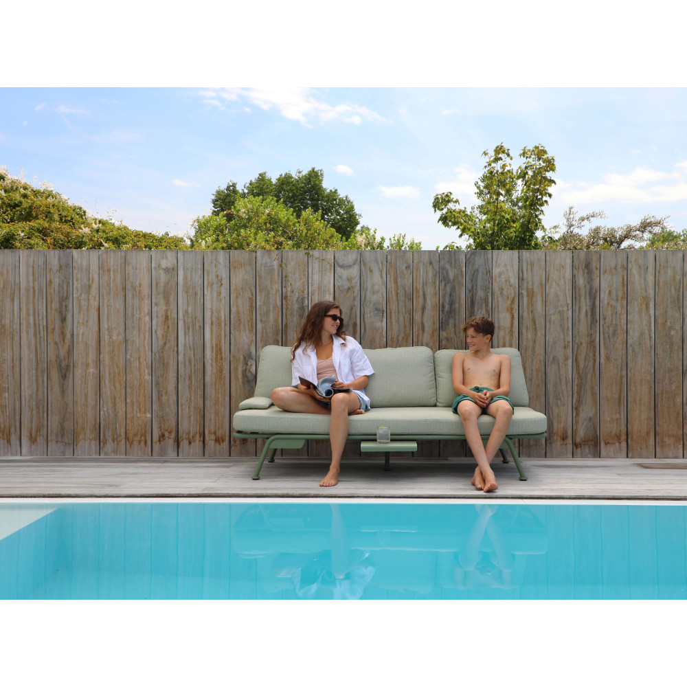 Сидіння мають знімні чохли з тканини Sunproof®, яка не вбирає воду, швидко сохне й зберігає колір навіть під прямим сонцем. Вставки з натурального тикового дерева додають природного тепла й вишуканості, гармонійно поєднуючись із сучасними формами.