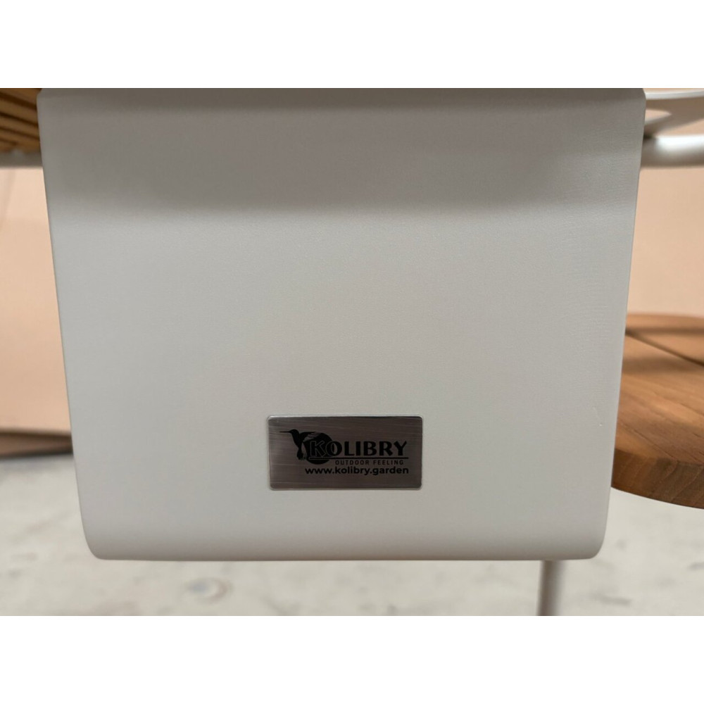 Сидіння мають знімні чохли з тканини Sunproof®, яка не вбирає воду, швидко сохне й зберігає колір навіть під прямим сонцем. Вставки з натурального тикового дерева додають природного тепла й вишуканості, гармонійно поєднуючись із сучасними формами.