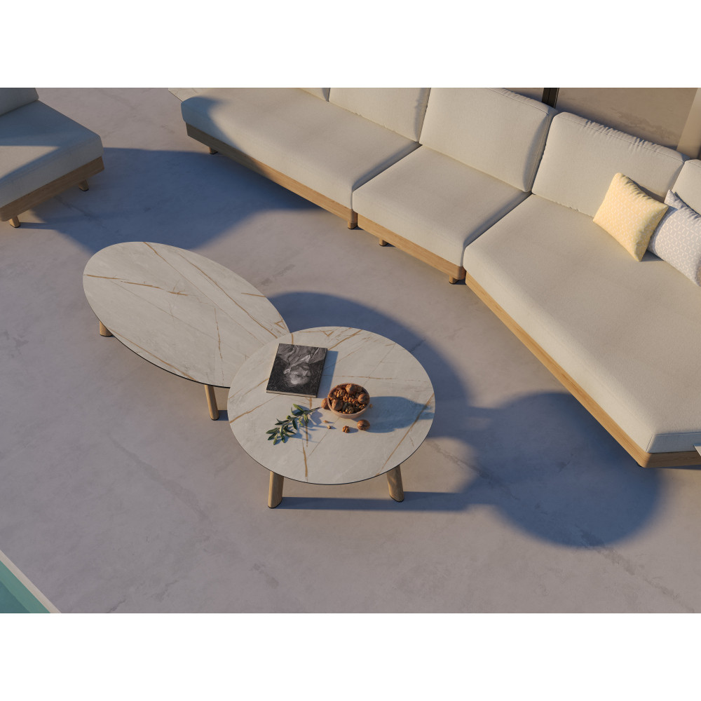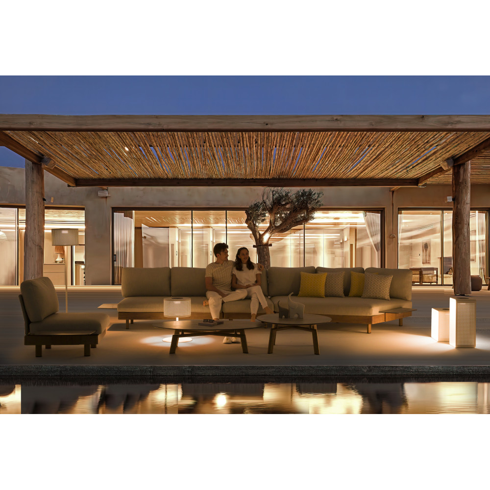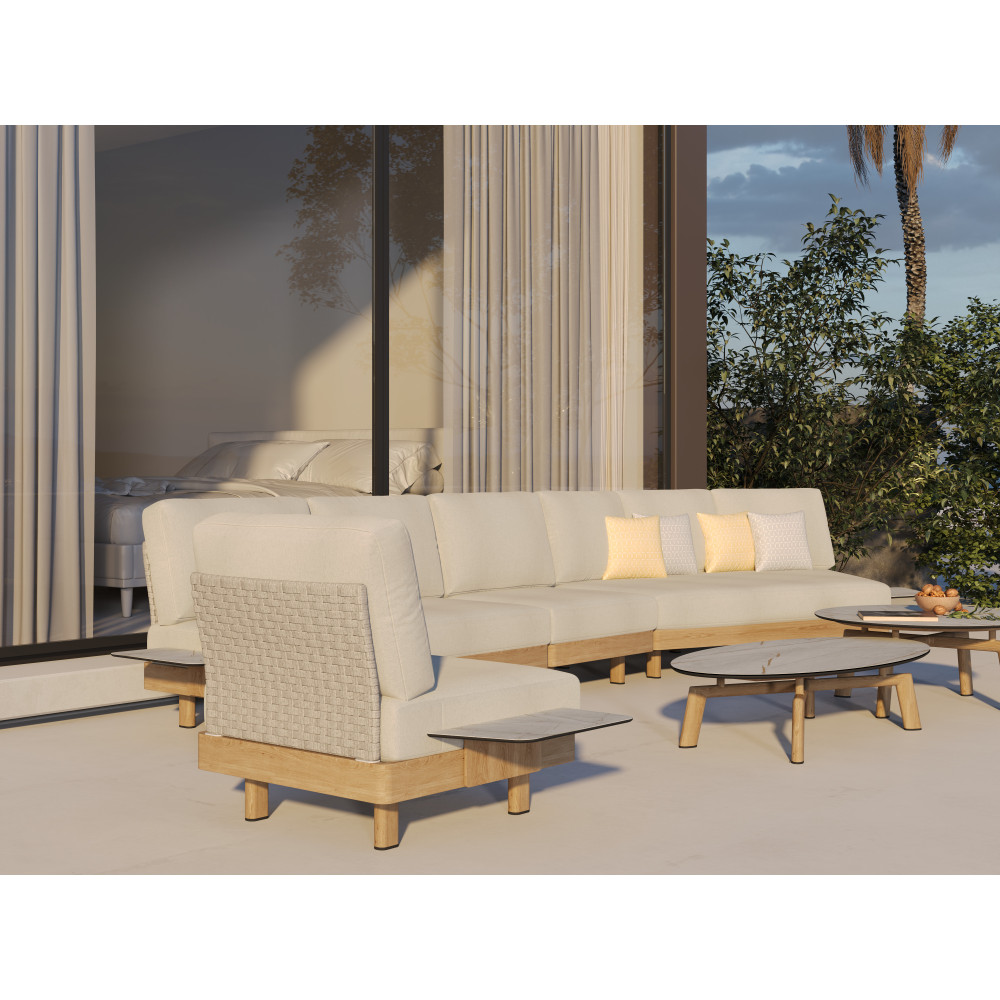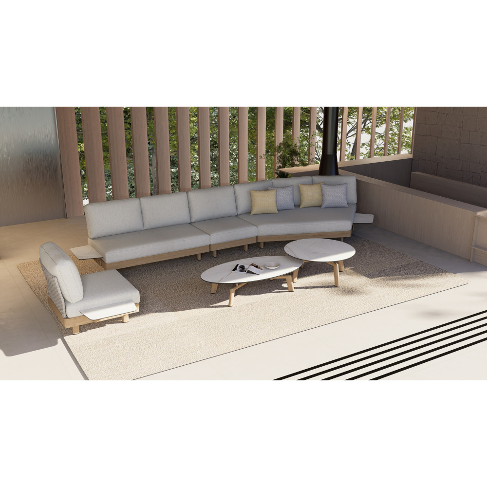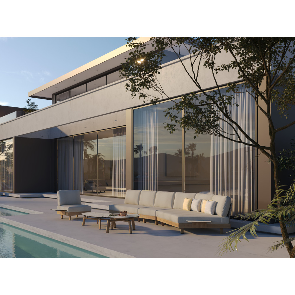 - Оббивка з акрилових тканин COUTUREtex — водовідштовхувальна, стійка до вологи й ультрафіолету, легко очищується та зберігає насиченість кольору.