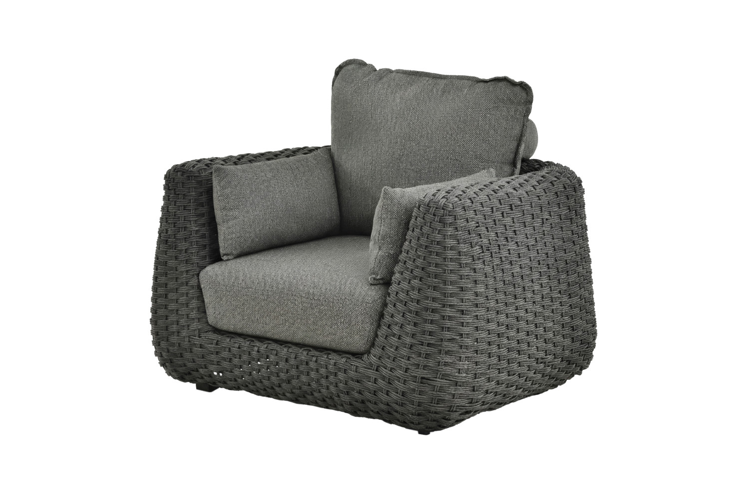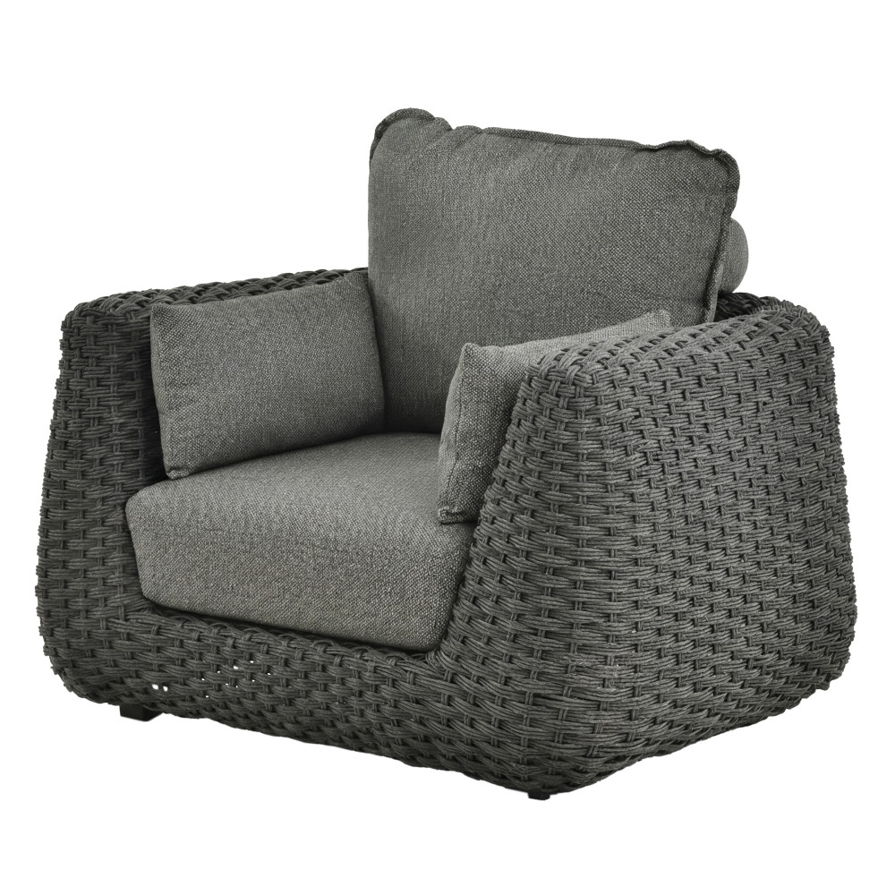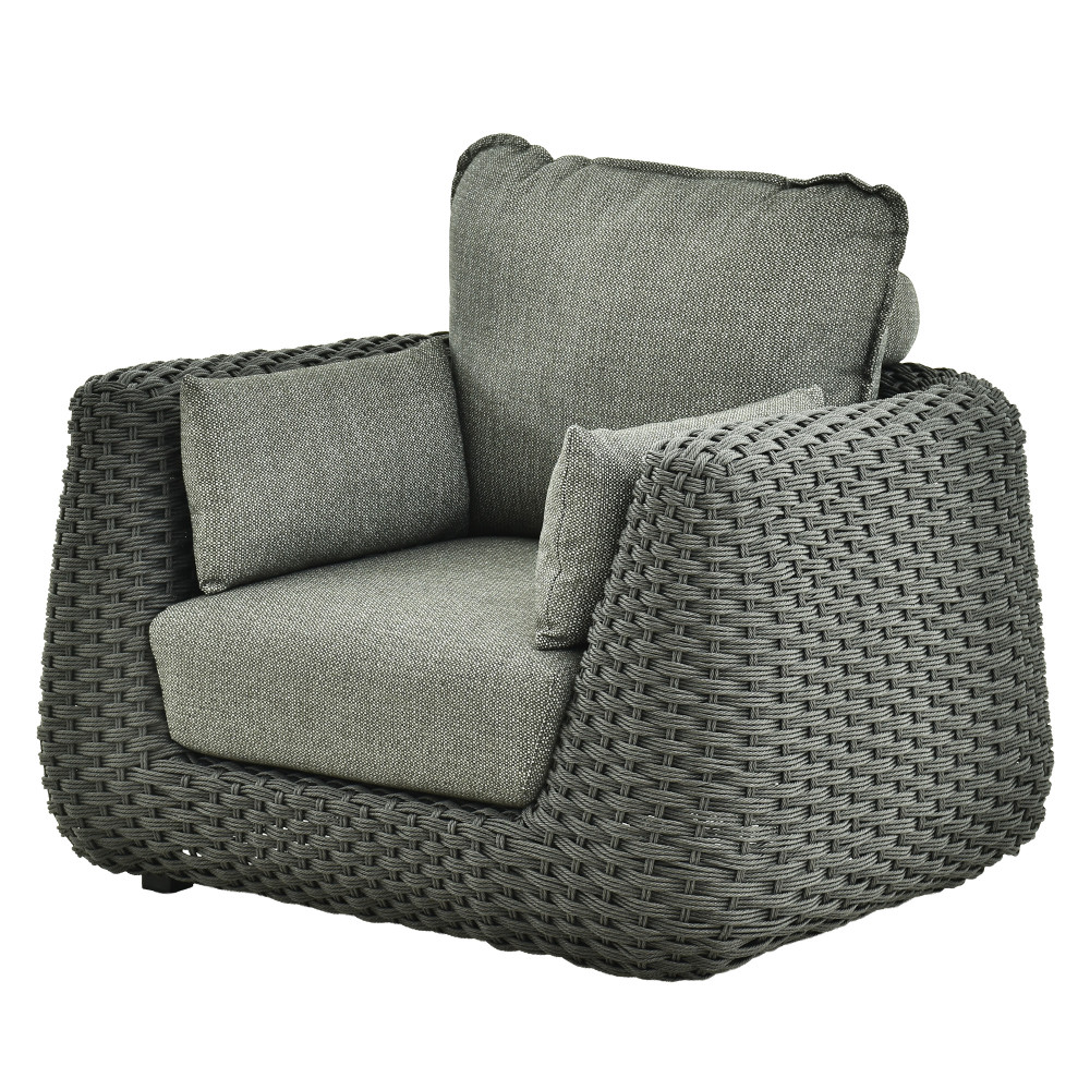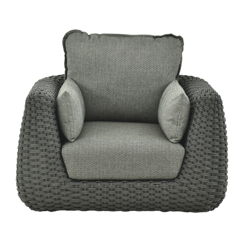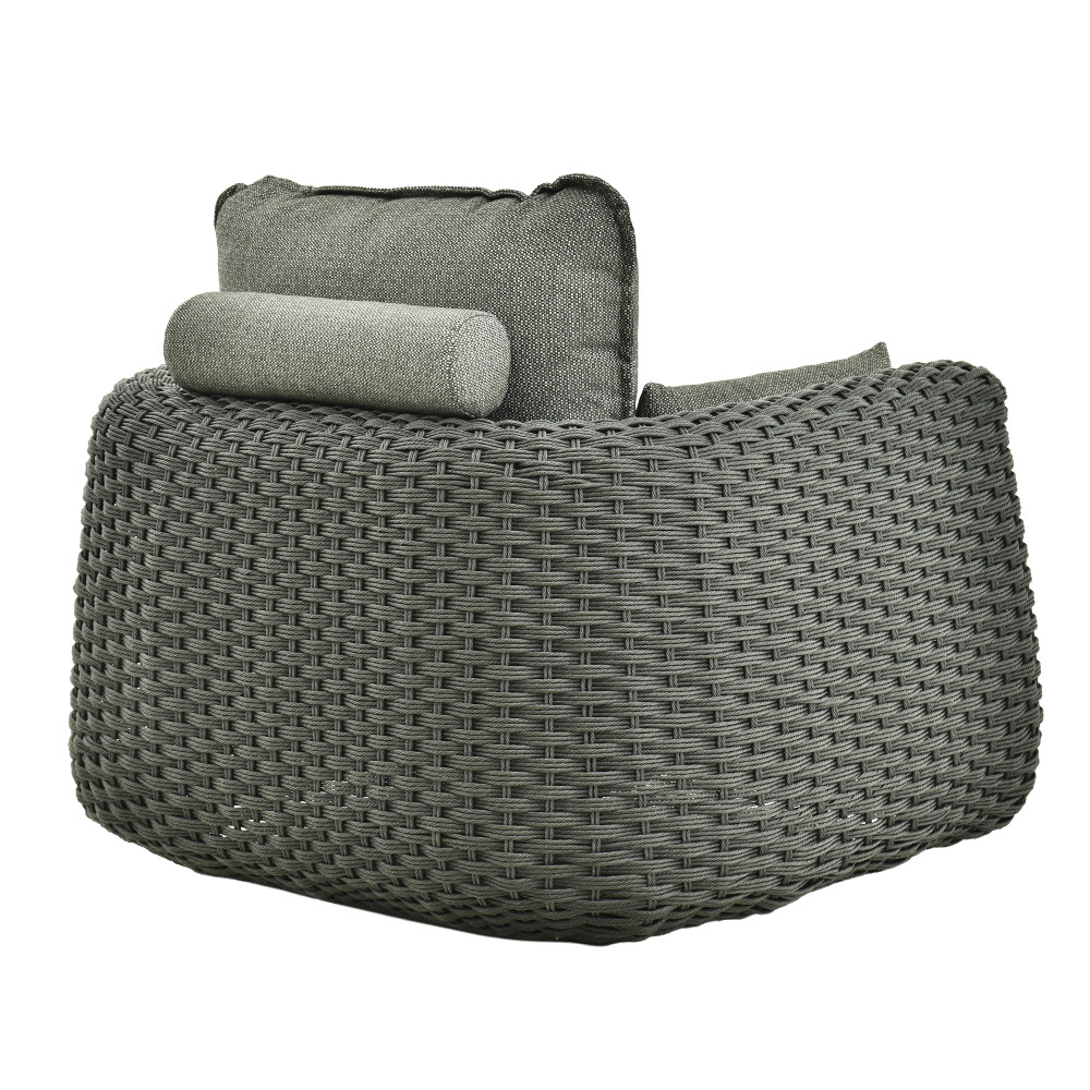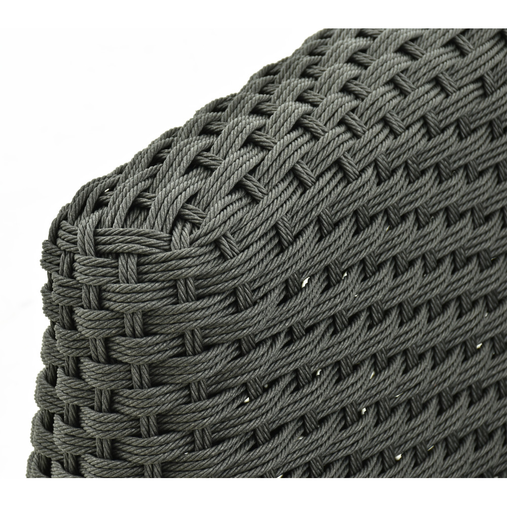 Міцна, але візуально легка конструкція виготовлена з алюмінію з порошковим покриттям, що гарантує стійкість до корозії та ультрафіолету. Об’ємна спинка з акрилового шнура додає текстури та створює зручну підтримку.