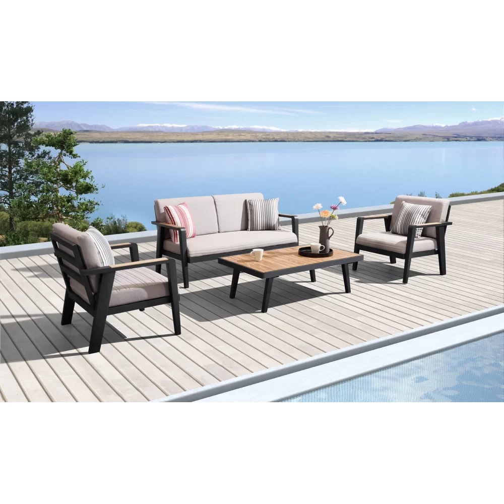 Продумане поєднання матеріалів у цій колекції надає меблям виразності, впевненості та унікального характеру. Сертифіковане тикове дерево, міцний алюмінієвий каркас і преміальний outdoor-текстиль забезпечують довговічність, комфорт і стиль.