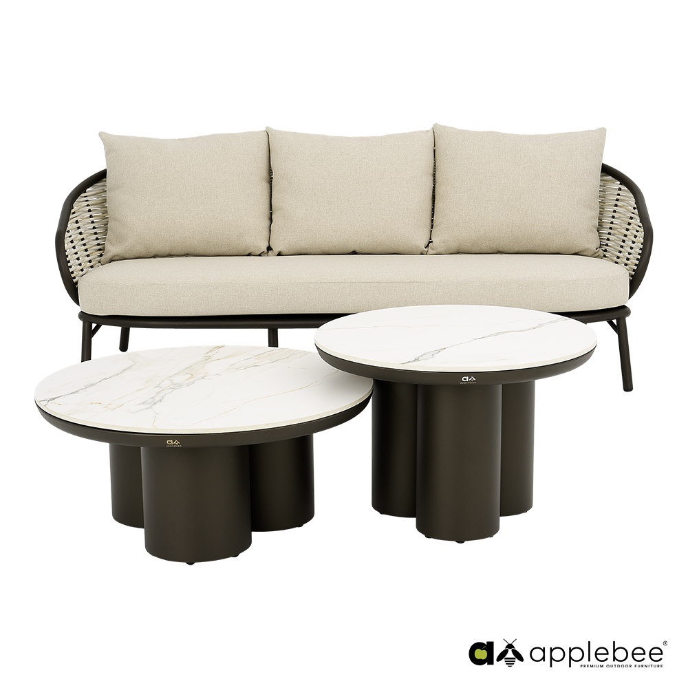 - Алюміній: Алюмінієва рама пофарбована міцним порошковим покриттям, стійка до атмосферних впливів і ультрафіолетового випромінювання. Алюміній не піддається іржі, непідвладний часу та стильний. Порошкове фарбування - це метод захисту, який часто використовується для садових меблів. Цей шар дуже міцний. Під час порошкового фарбування на алюміній наноситься захисне покриття у вигляді порошку. Порошкове покриття нагрівається, у результаті порошкове покриття стає в'язким. Під час затвердіння в печі частинки порошку спочатку стають рідкими під дією тепла, потім стають в'язкими по структурі і, нарешті, тверднуть, утворюючи гарне та міцне покриття. Покриття забезпечує захист від зовнішніх дій.