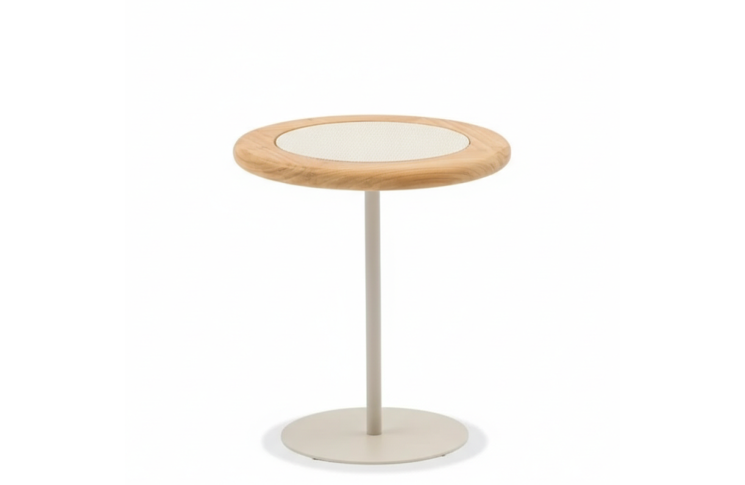 Круглий столик, який доповнює цей комплект меблів LAGOM у світлих відтінках тканини з використанням тика, створений з урахуванням стилю, практичності та естетики. Цей столик має круглу форму, що робить його ідеальним елементом для створення затишної атмосфери в центрі облаштованого простору.