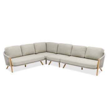 Кутовий комплект літніх меблів LAGOM у світлих відтінках тканини з використанням тика — це вишуканий комплект меблів, який поєднує в собі естетику та практичність. Він виготовлений із тикового дерева, що відоме..
