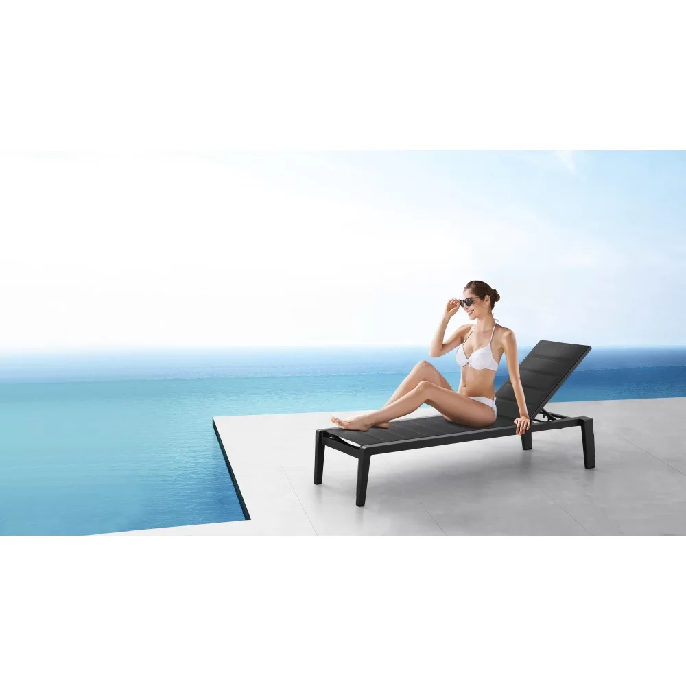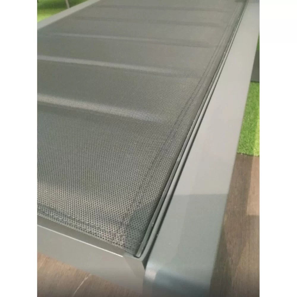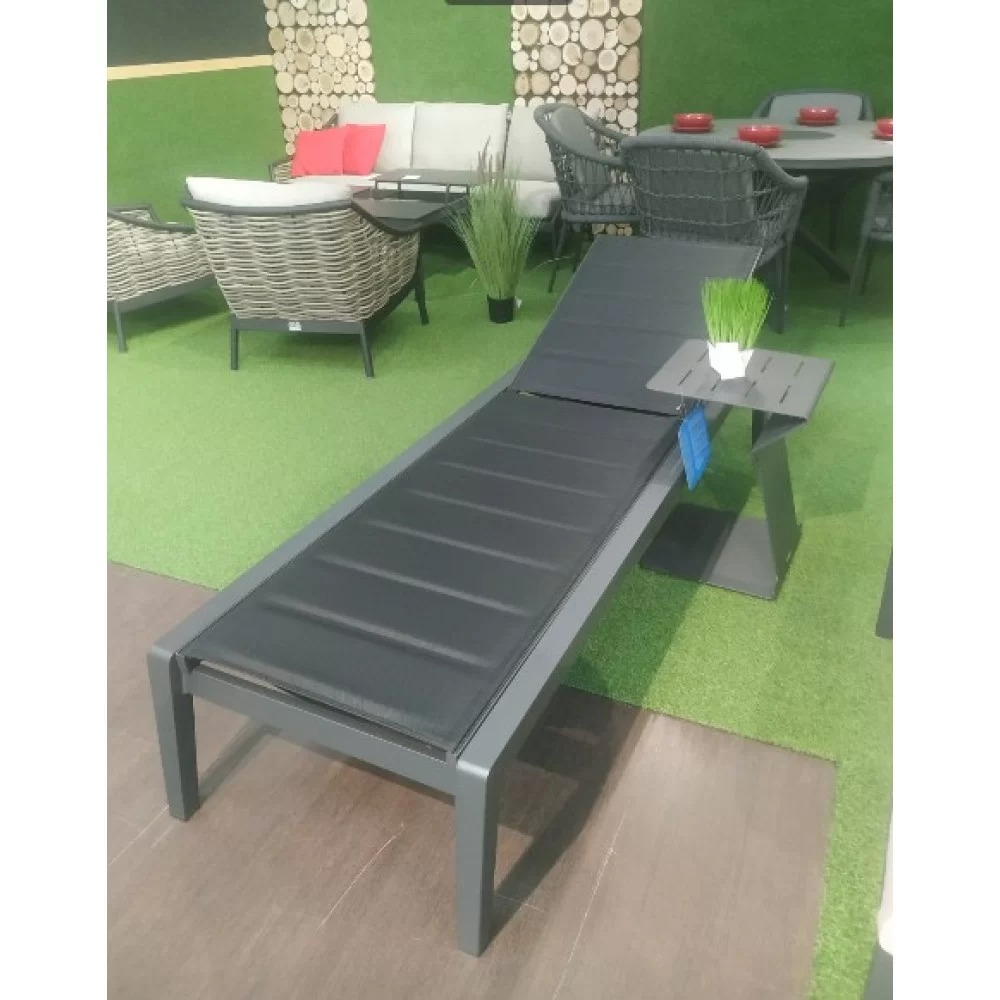 Шезлонг Emoti - це найсучасніші матеріали, міцна рама з алюмінію у поєднанні зі спеціальною тканиною - сіткою Textiline, яка забезпечує надійність та комфорт при використанні у будь-яких погодних умовах. Шезлонг Emoti має регульовану по висоті нахилу спинку та компактний висувний столик, все це створює максимум зручності при використанні. Легка вага шезлонгу з алюмінію дозволяє легко переміщати його в зоні вашого басейну і тераси.