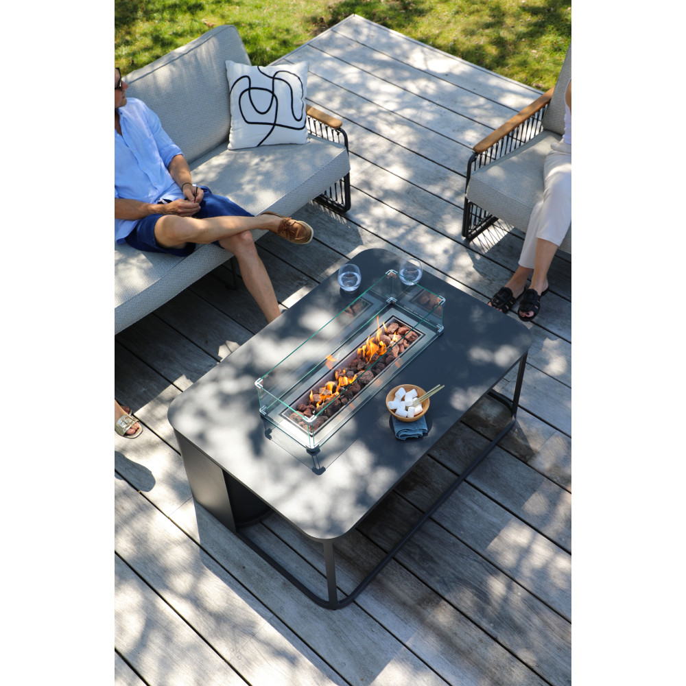 Камінні столи працюють на газі (пропан або бутан у поєднанні з редуктором) і прості у використанні. Полум'я можна запалити та контролювати за допомогою панелі керування збоку від столу. Ні іскор, ні диму. Працює як обігрівач.