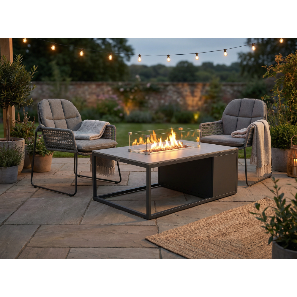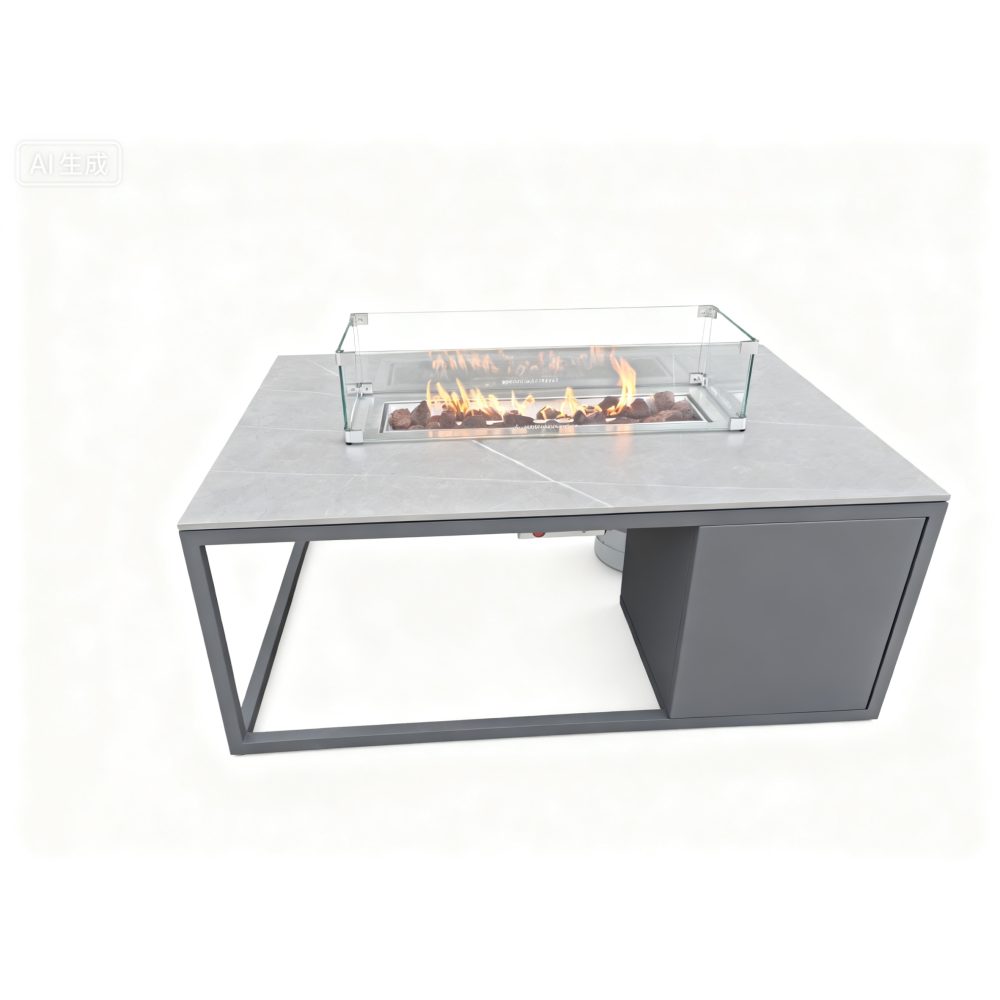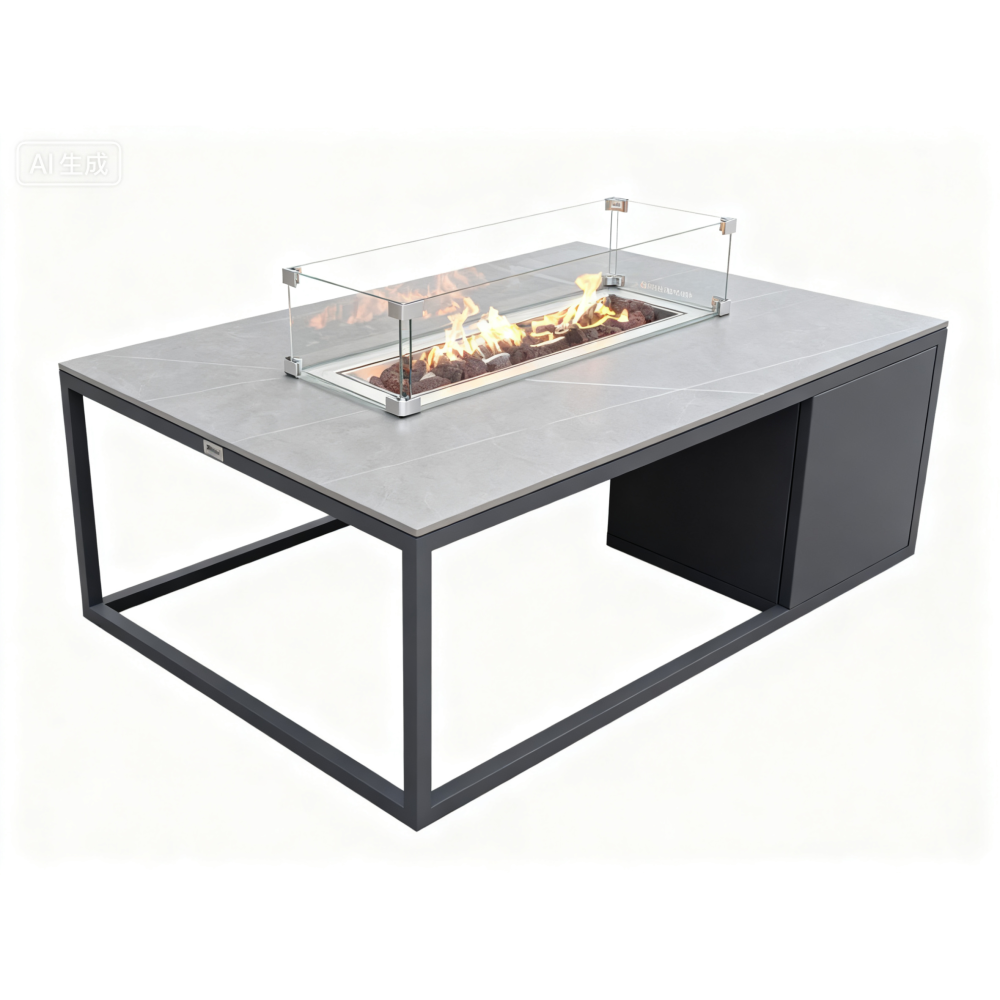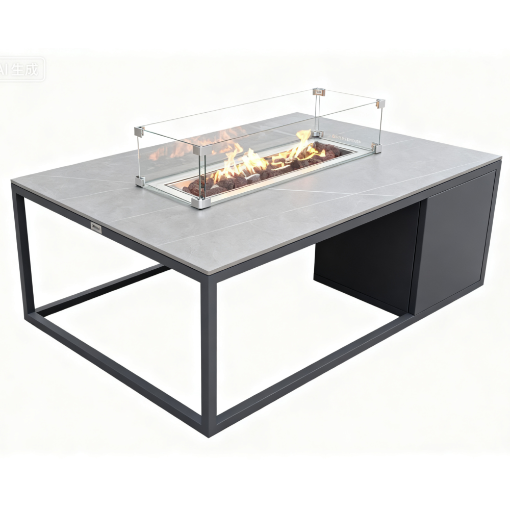 Головна особливість колекції Fueggo — інтегрований газовий камін у столику, який дозволяє створити приємну атмосферу навіть у прохолодні вечори.