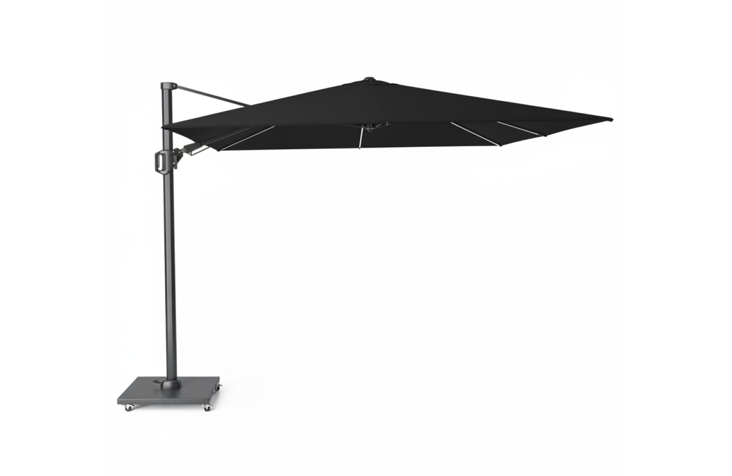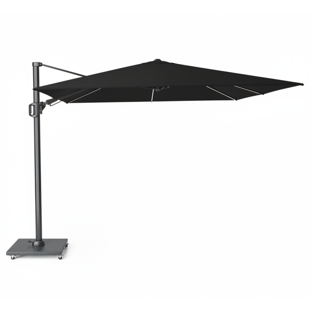 Забезпечує тінь протягом усього дня без необхідності переміщення завдяки нахилу T² назад і вбік та основі, що обертається на 360°