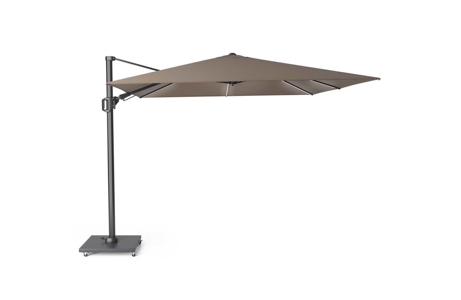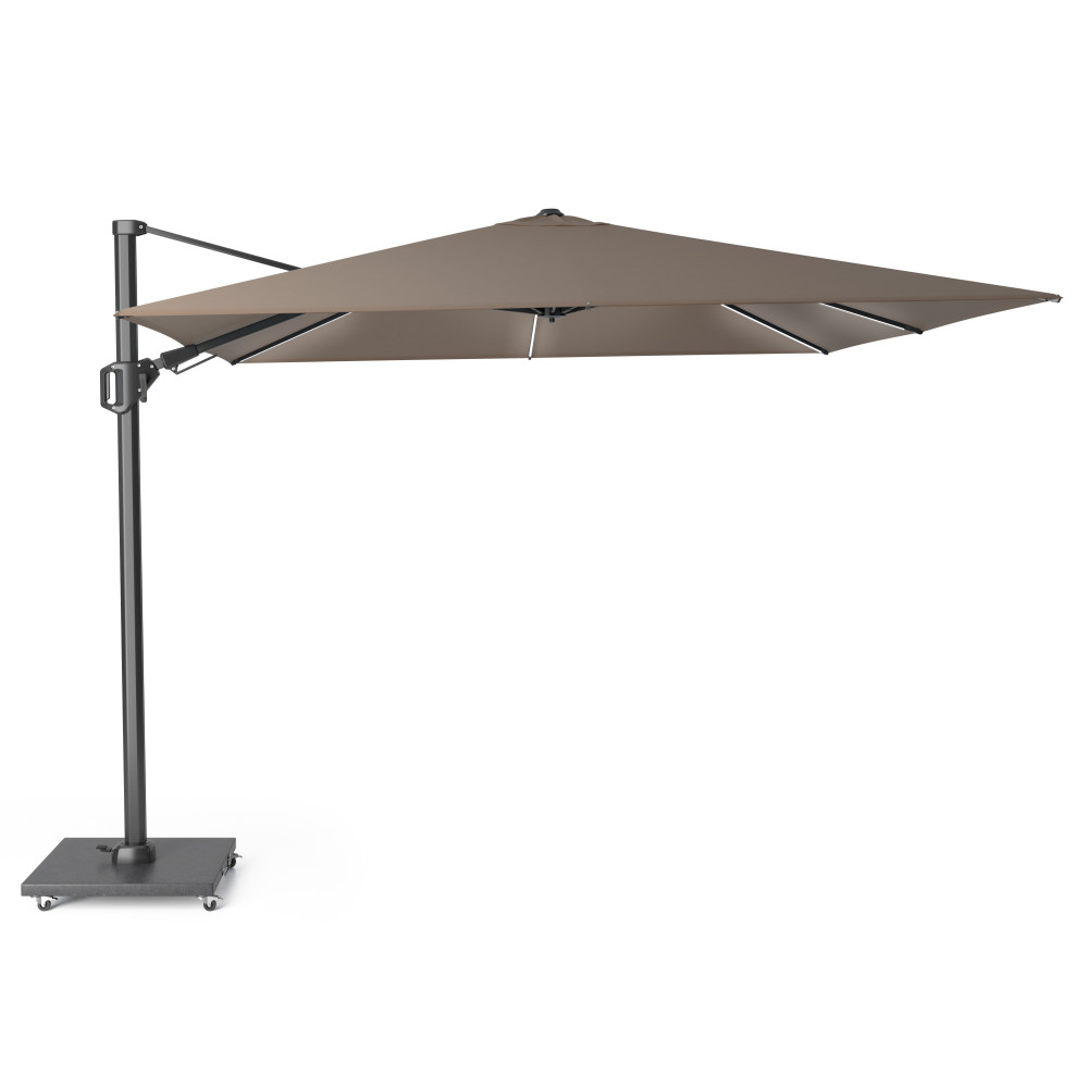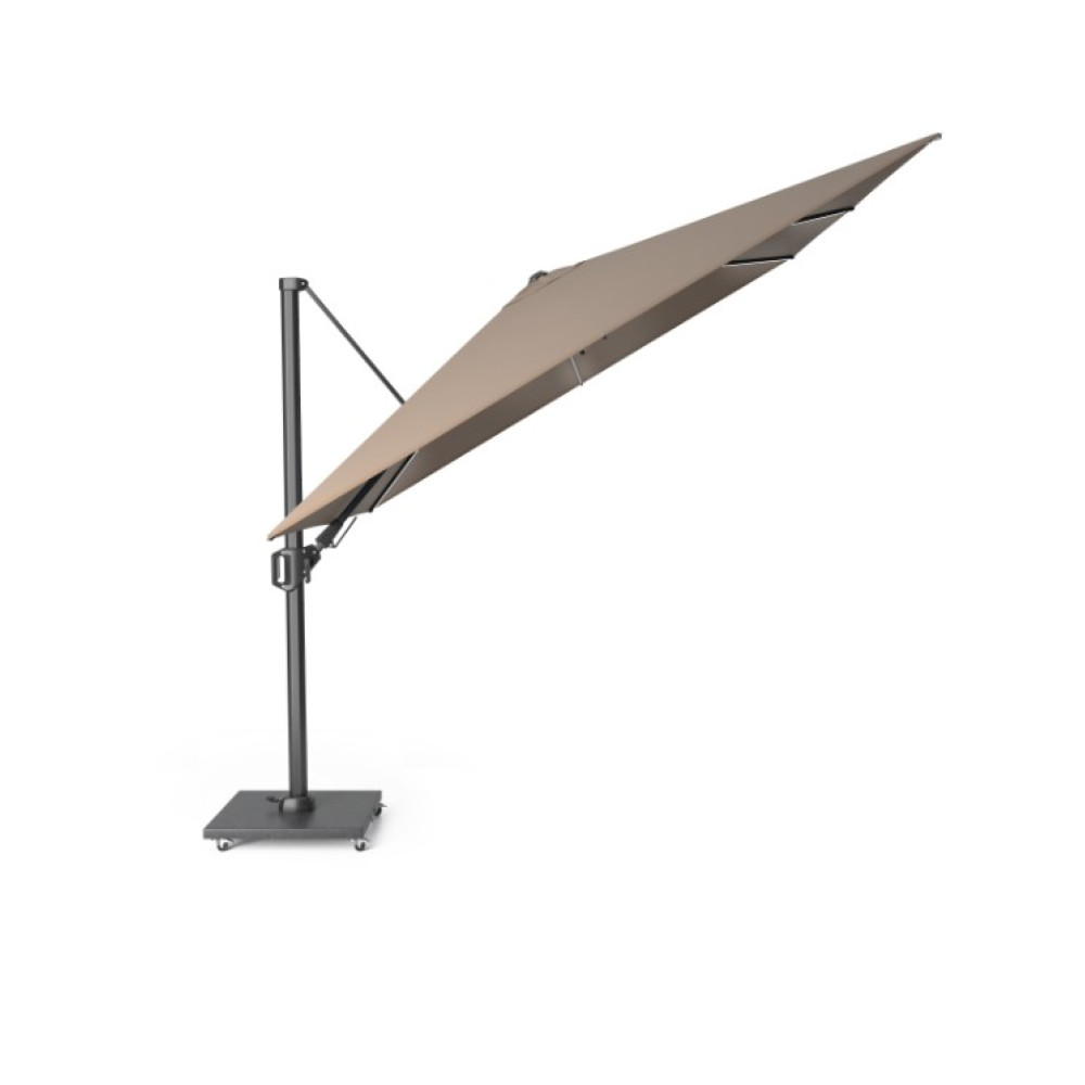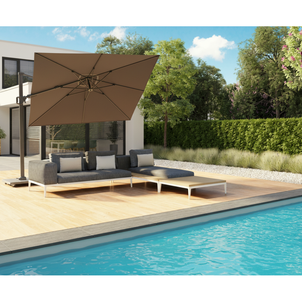 Забезпечує тінь протягом усього дня без необхідності переміщення завдяки нахилу T² назад та вбік і основі, що обертається на 360°