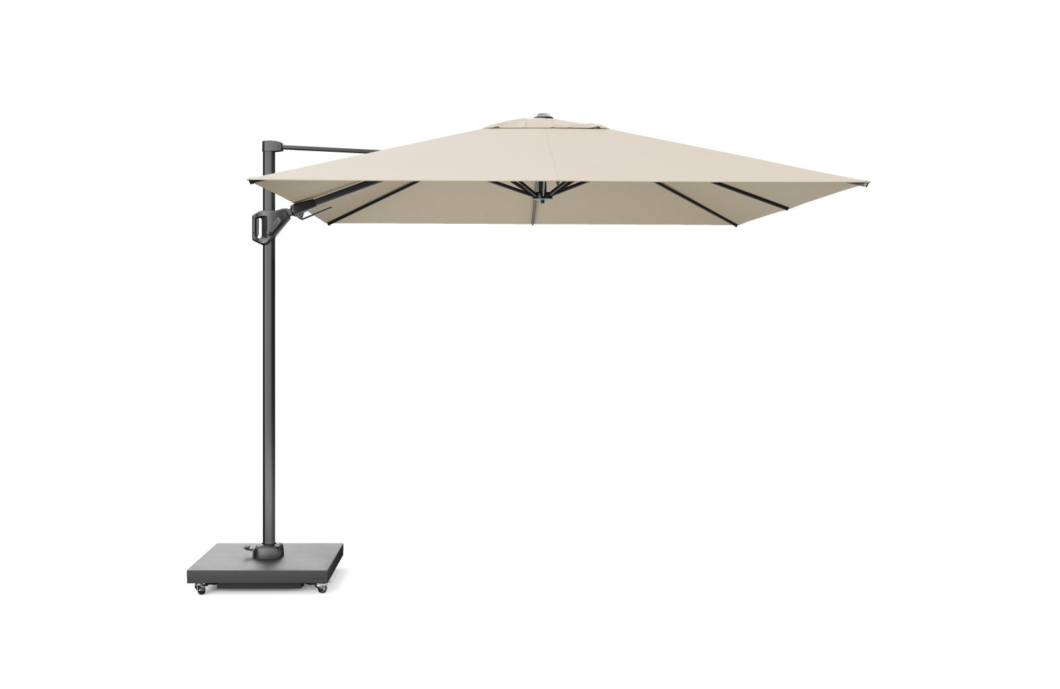 Рекомендується основа Platinum Sun & Shade вагою 90 кг з поворотними колесами для зручного переміщення