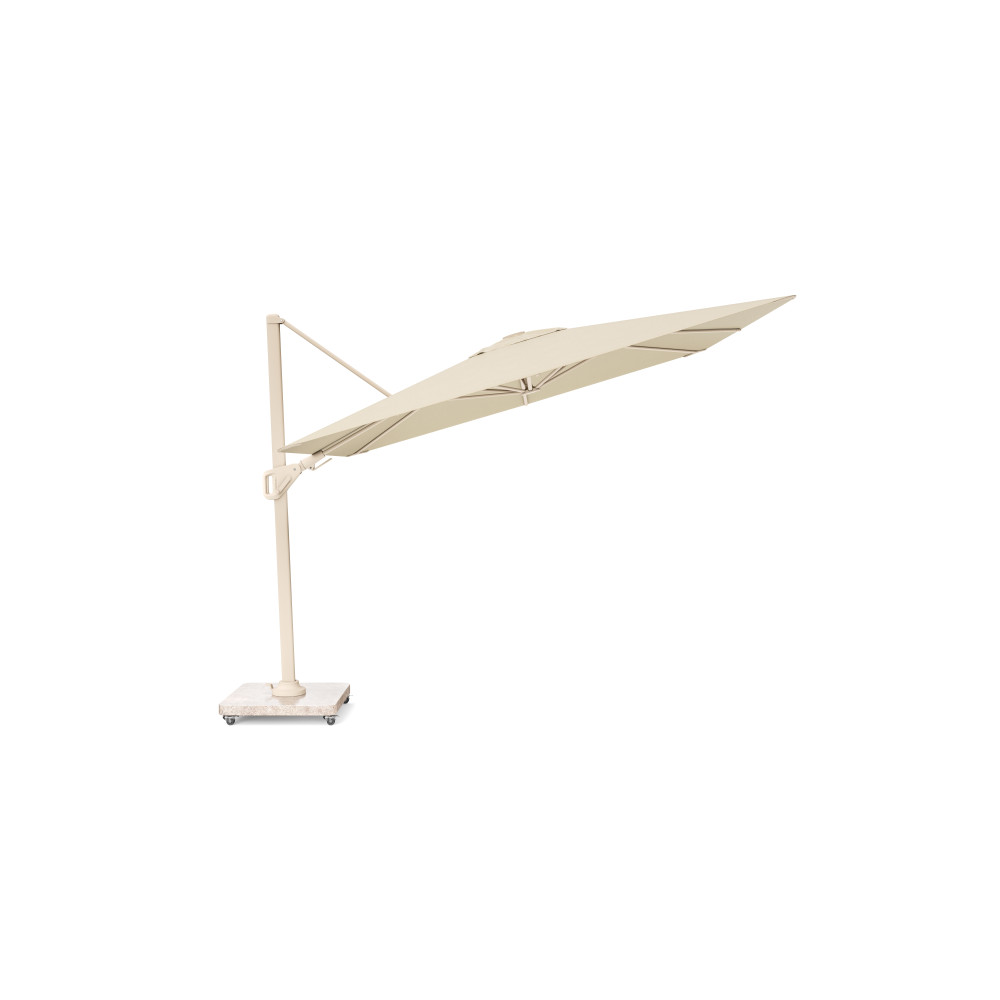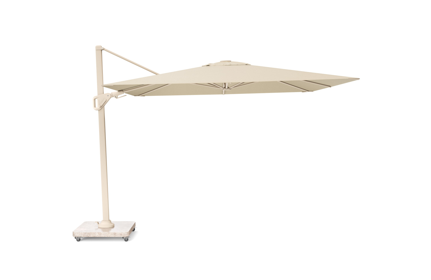 Ми рекомендуємо основу для парасольки Platinum Sun & Shade вагою 120 кг. Вона оснащена поворотними колесами, щоб парасольку було легко пересувати. Також доступна підставка в землю (арт. № 6906), яка забезпечує більше простору на терасі.
